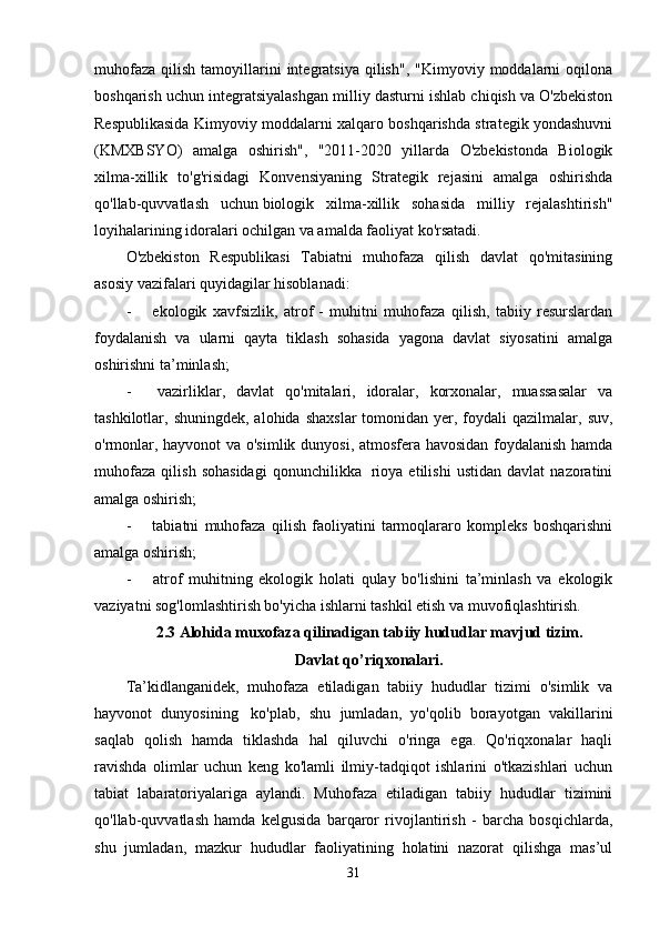 2.2 O’zbekiston Respublikasi “Tabiatni muxofaza qilish Davlat