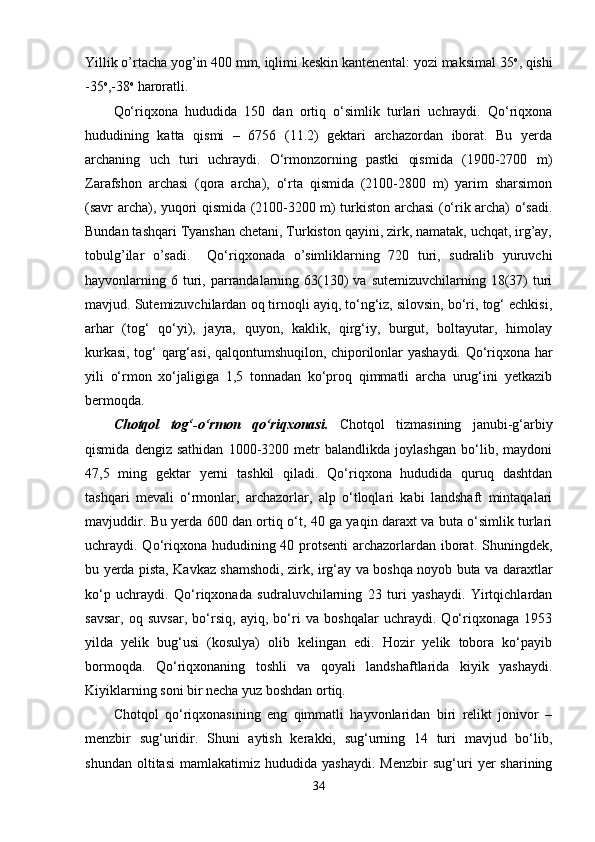 cho’zilgan.   U   ilgari   Zarafshon   zakaznigi   deb   atalar   edi.   Iqlimi   kontenental