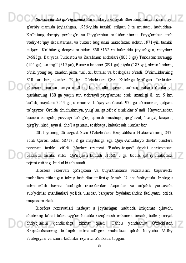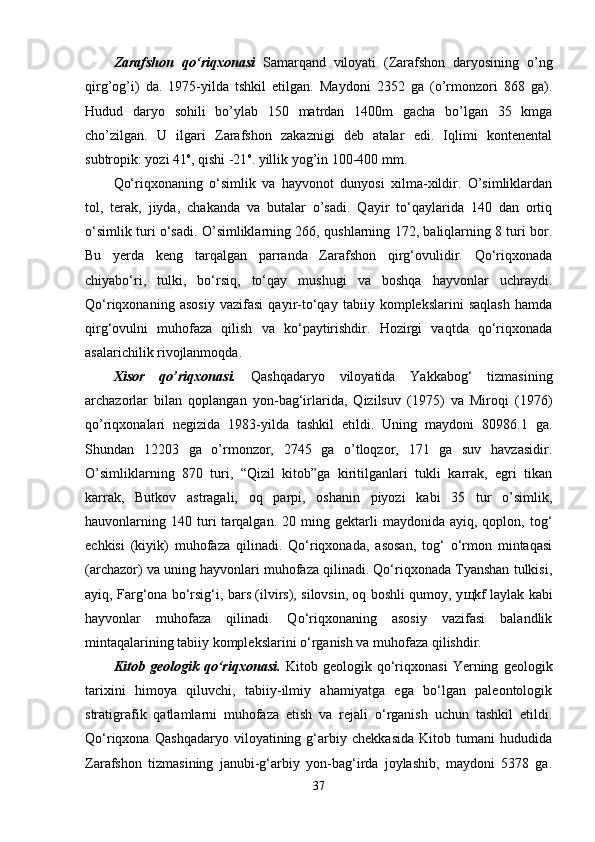 qirg’og’i)   da.   1975-yilda   tshkil   etilgan.   Maydoni   2352   ga   (o’rmonzori   868   ga).