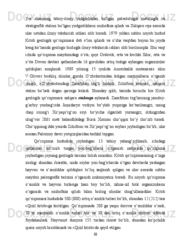 tarixini   himoya   qiluvchi,   tabiiy-ilmiy   ahamiyatga   ega   bo‘lgan   paleontologik