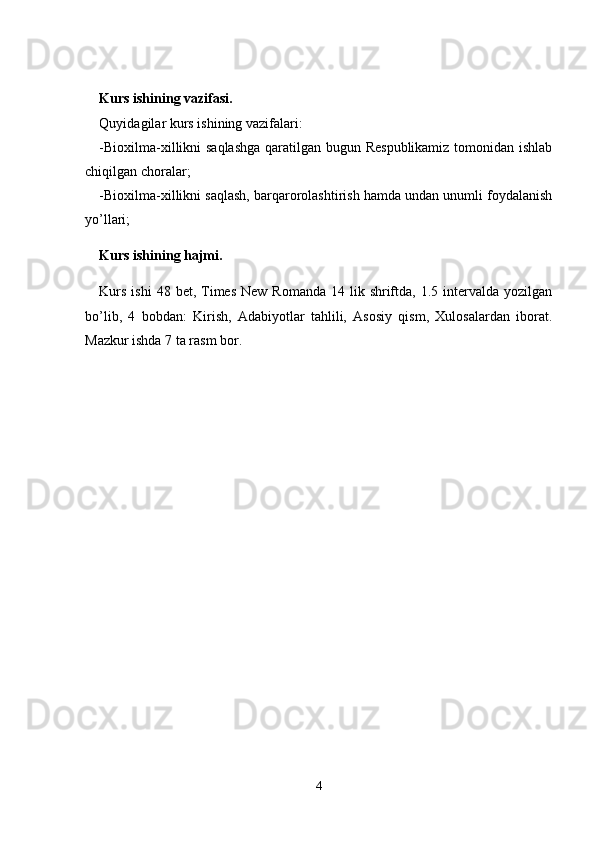 bioxilmaxilligini   saqlash   maqsadida   aniq   yo‘naltirilgan   ishlar   olib   borilmoqda.