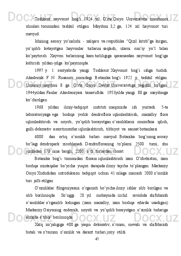 42 Toshkent    xayvonot   bog’i    1924   yil    O’rta Osiyo   Universiteta   zooshunos