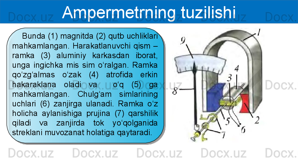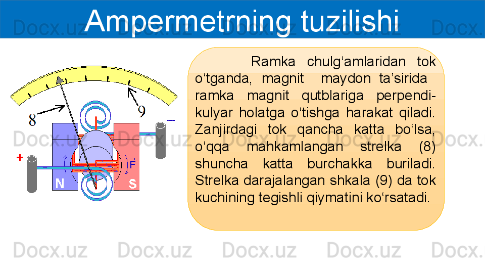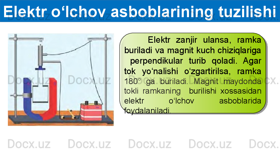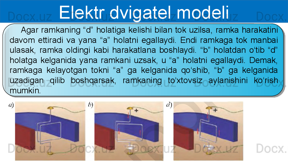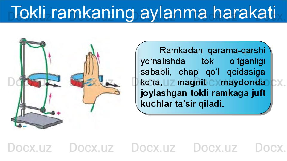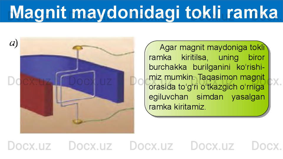 Bir jinsli magnit maydonda tokli ramkaning aylanma harakati
