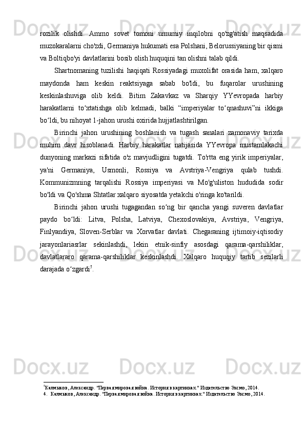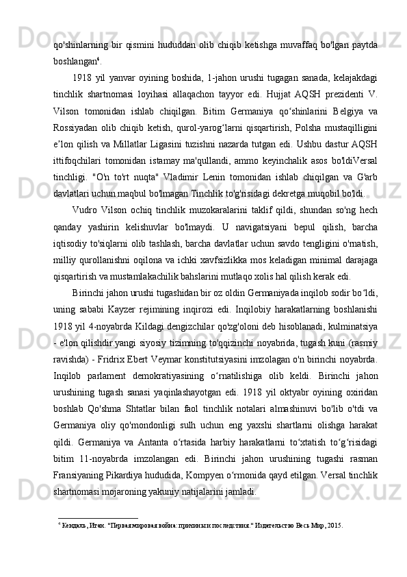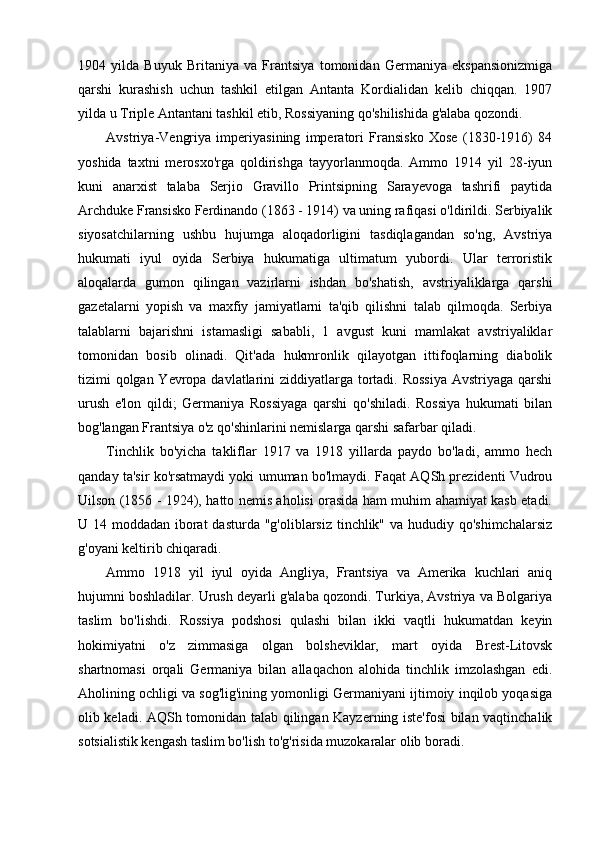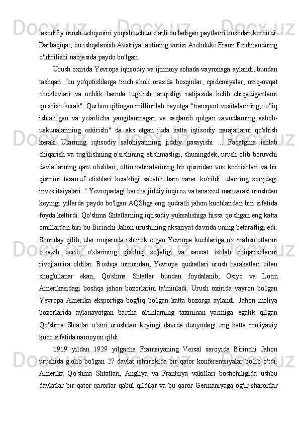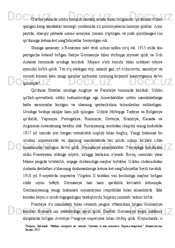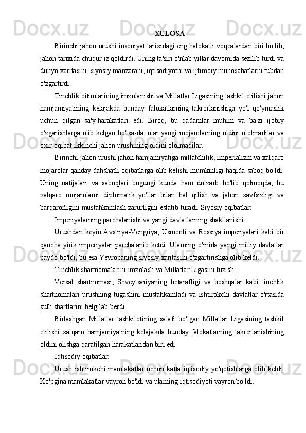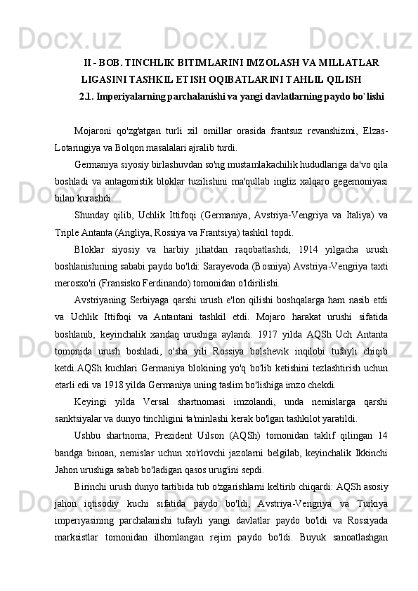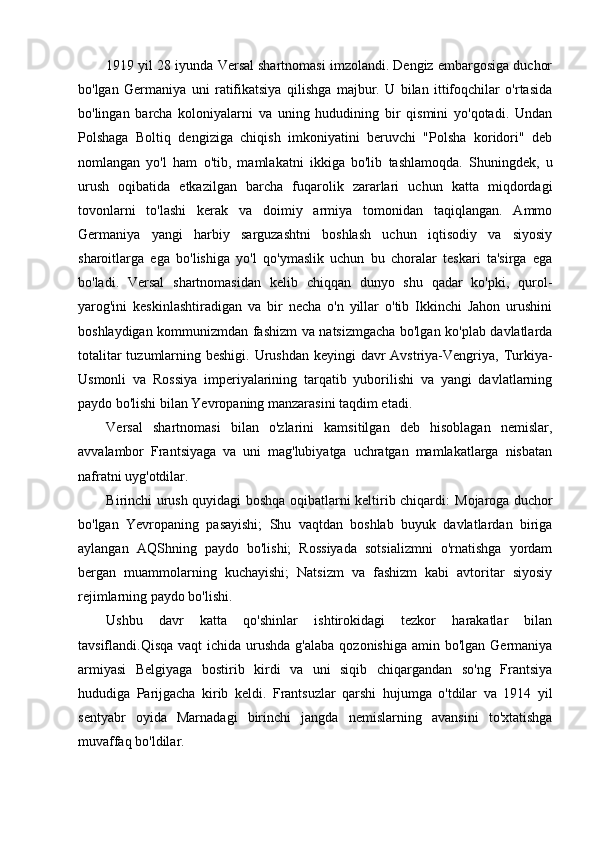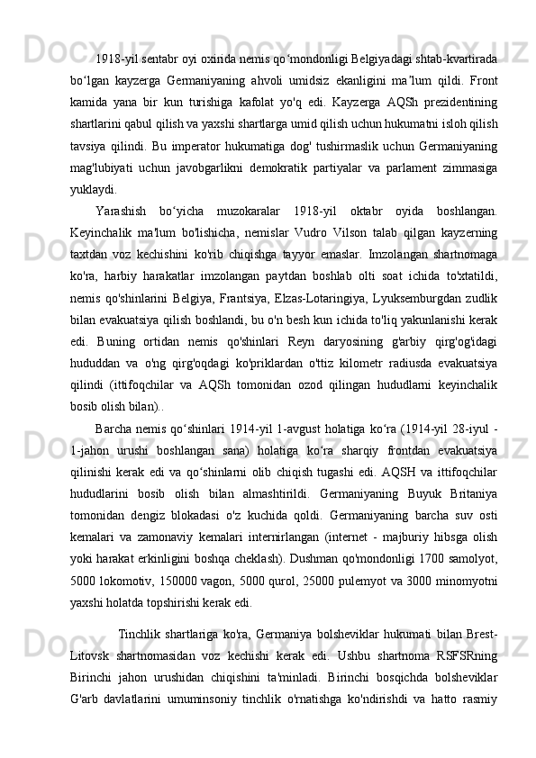 Birinchi jahon urushining nihoyasi va insoniyat tarixida eng yangi davrning boshlanishi