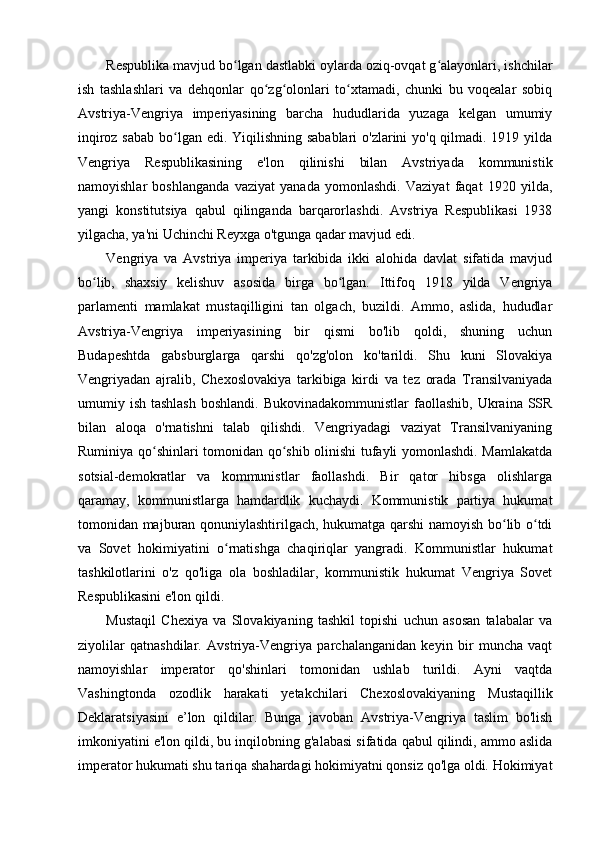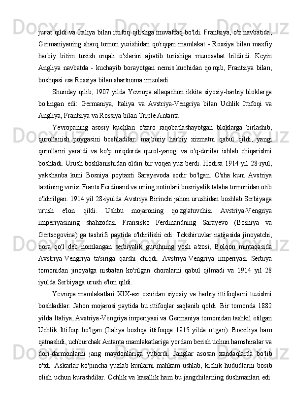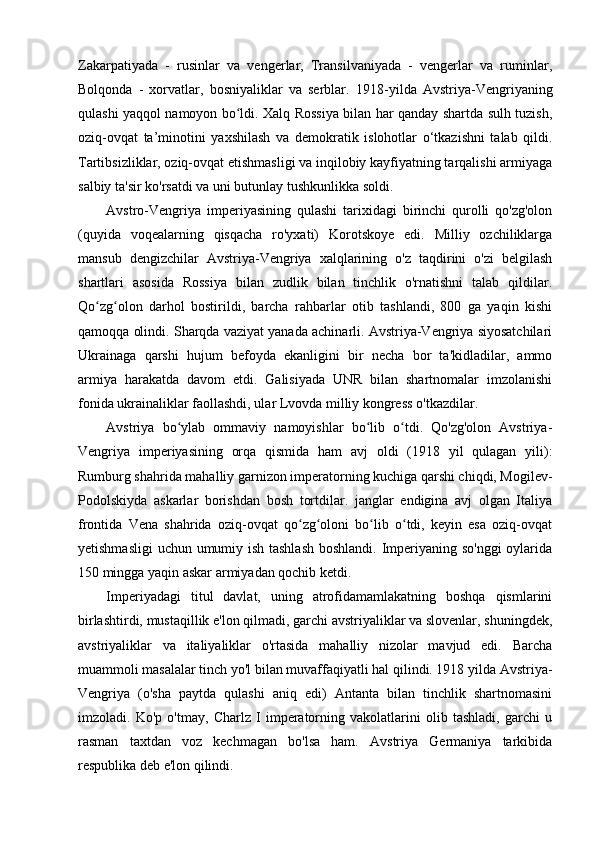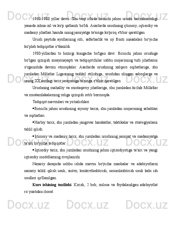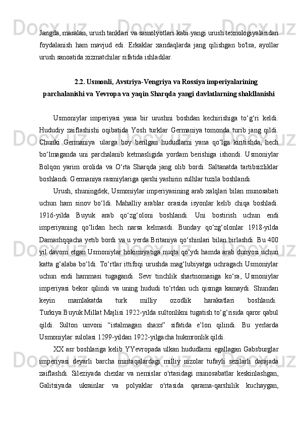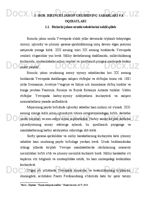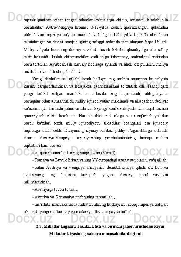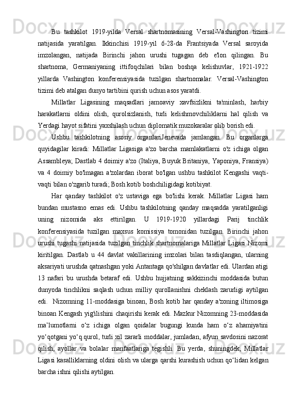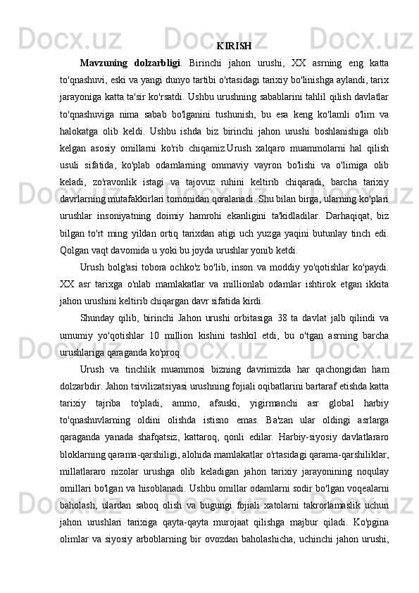 Birinchi jahon urushining nihoyasi va insoniyat tarixida eng yangi davrning boshlanishi