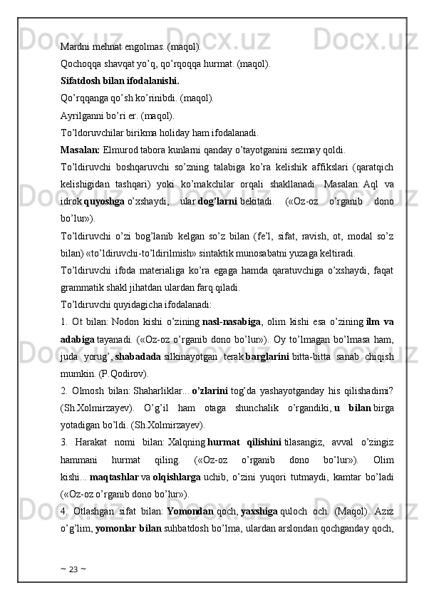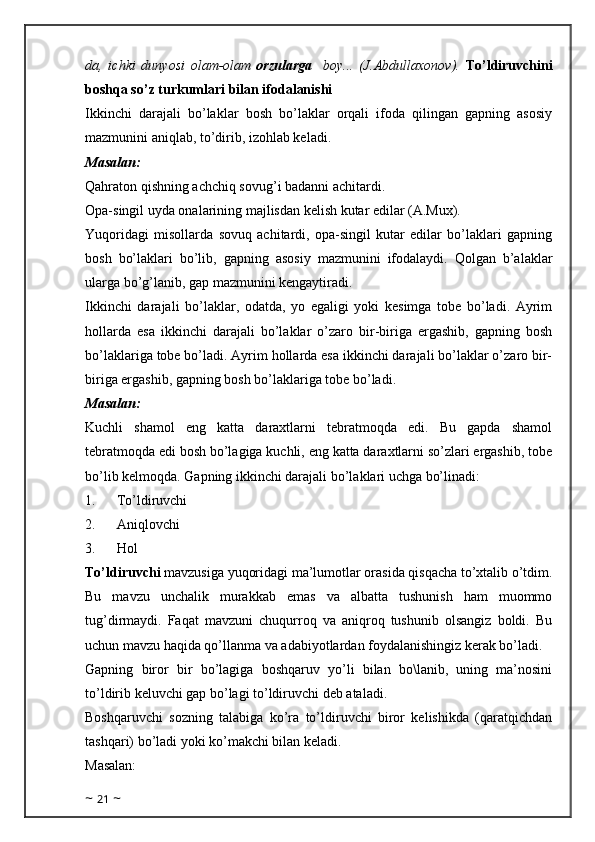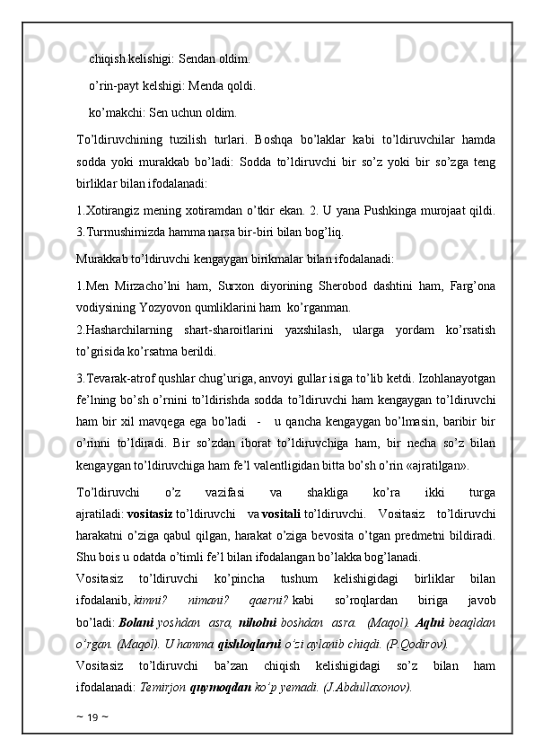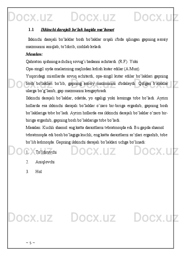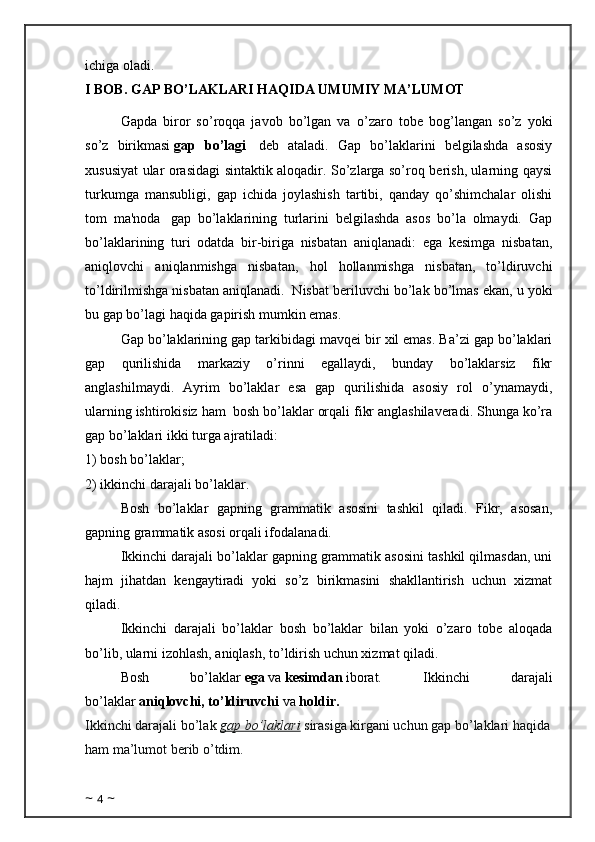 Birinchi va ikkinchi - darajali bo’laklarning ishtirokiga ko’ra gap tiplari