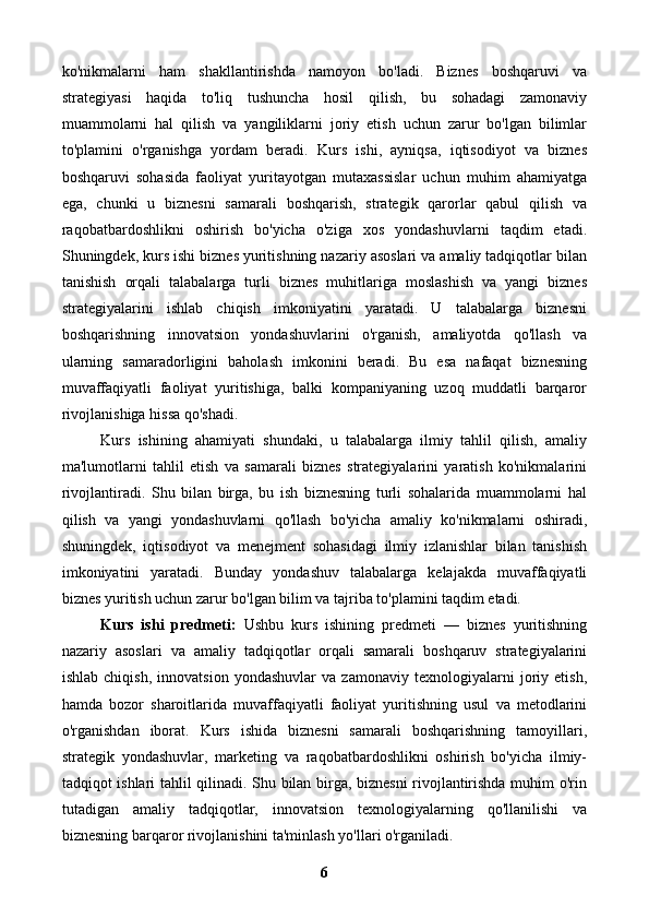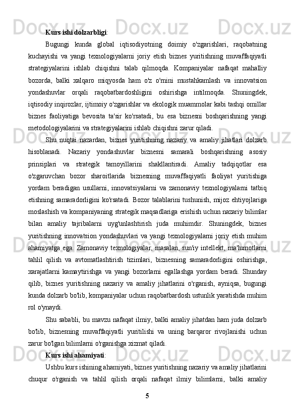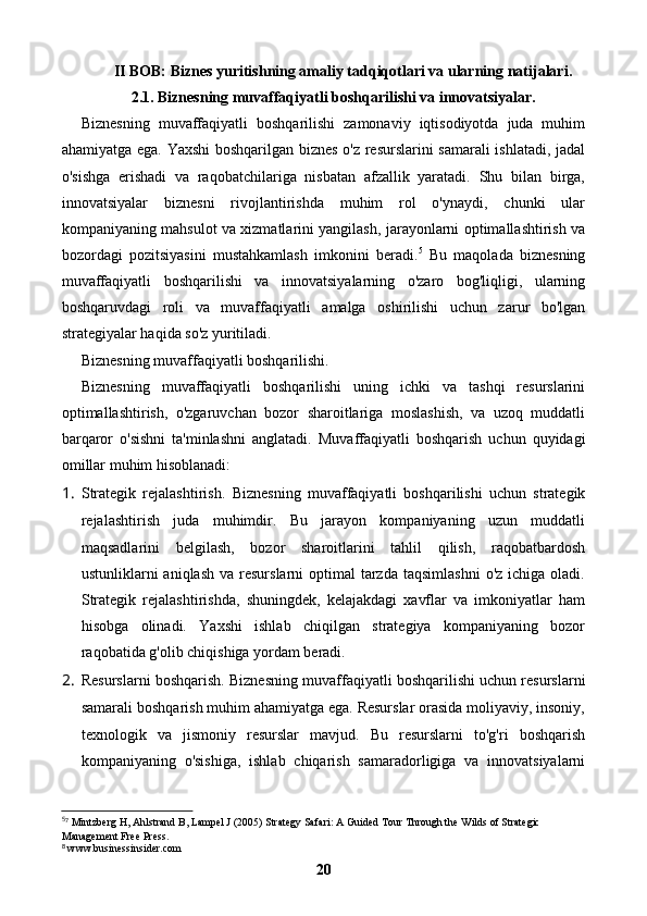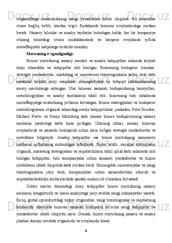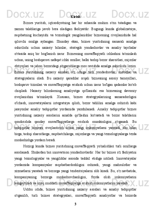 Biznes yuritish yo’nalishidagi nazariy qarashlar va amaliy tadqiqotlar