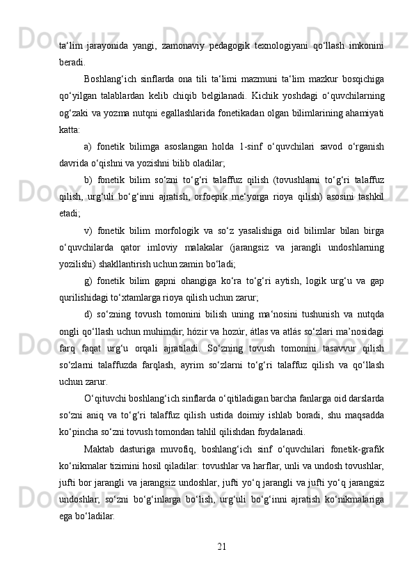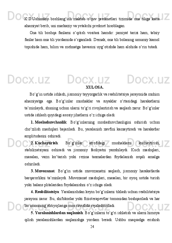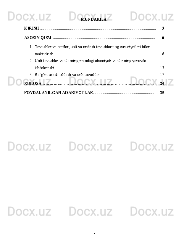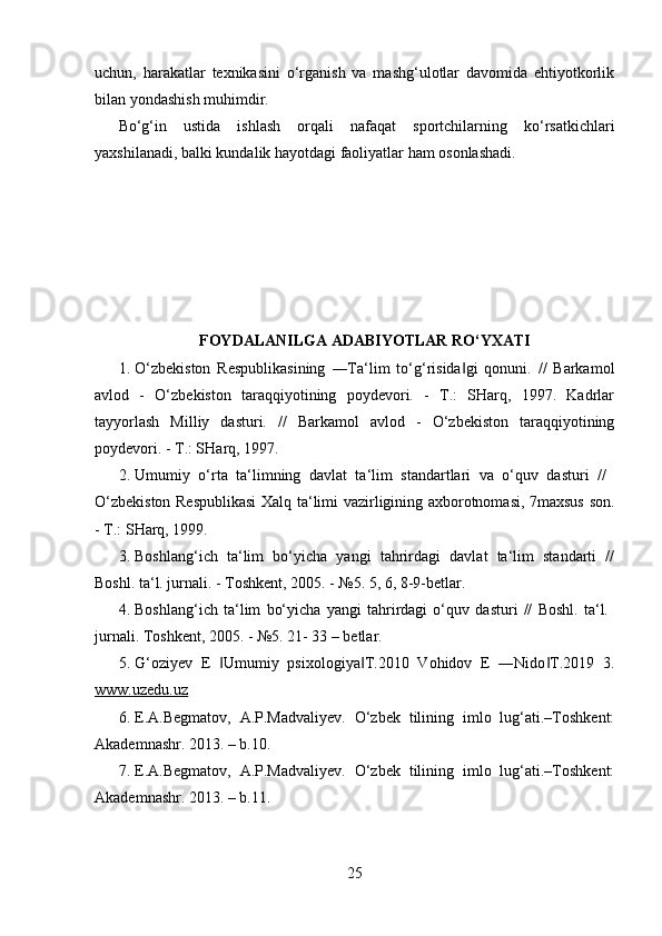 | FOYDALANILGAN ADABIYOTLAR............................................................ | 25 |