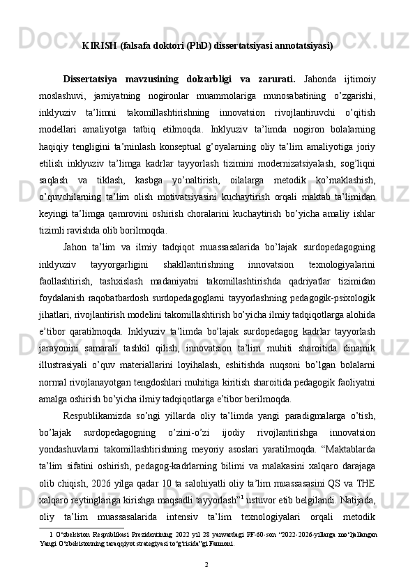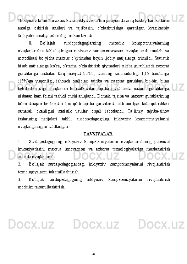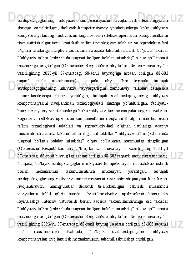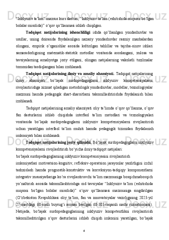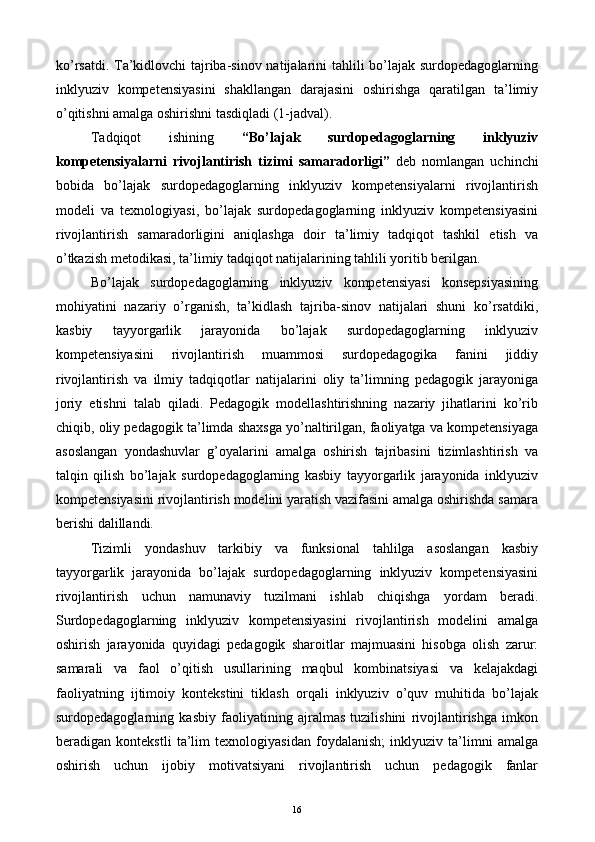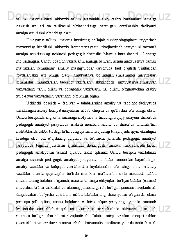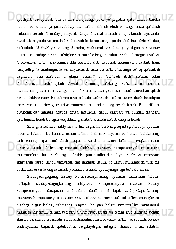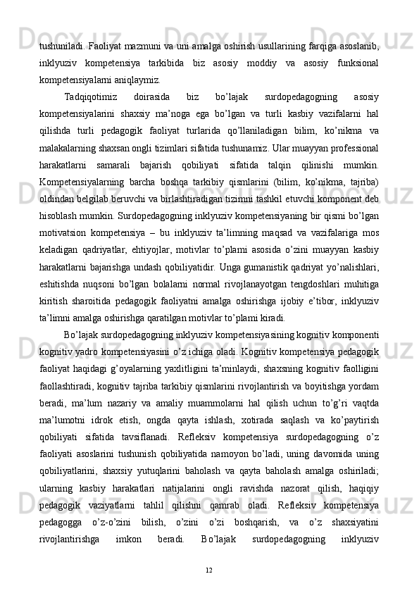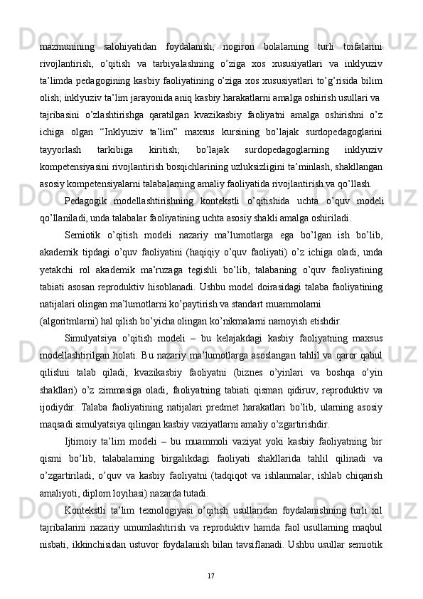 Bo’lajak surdopedagoglarning inklyuziv kompetensiyasini rivojlantirish