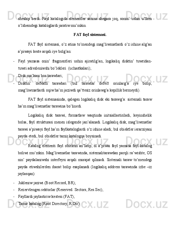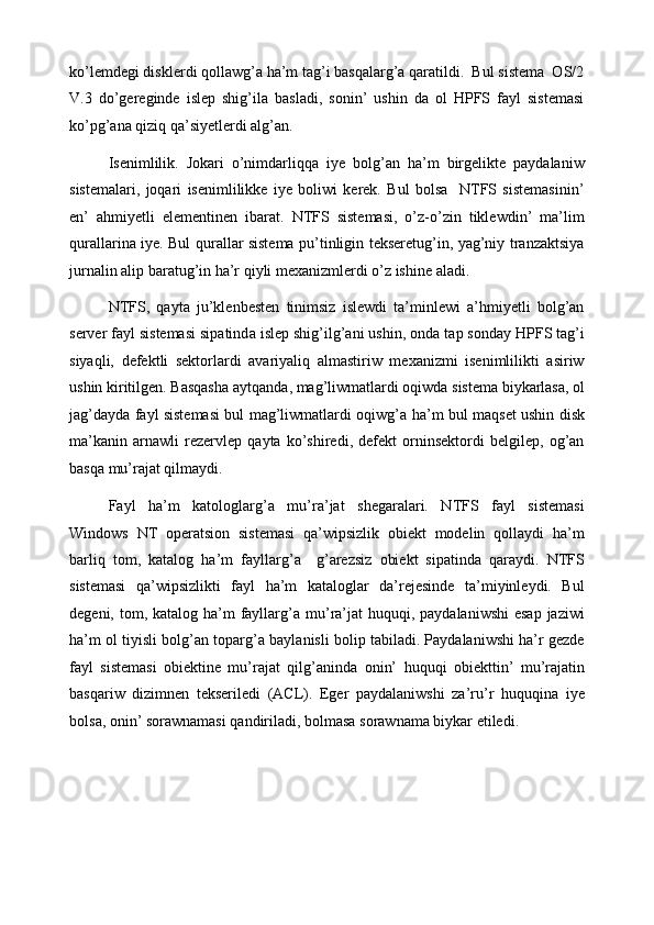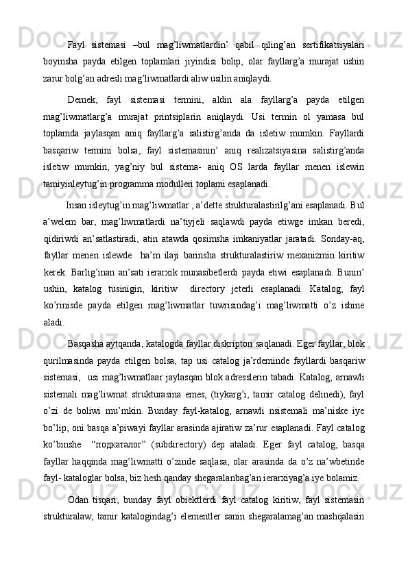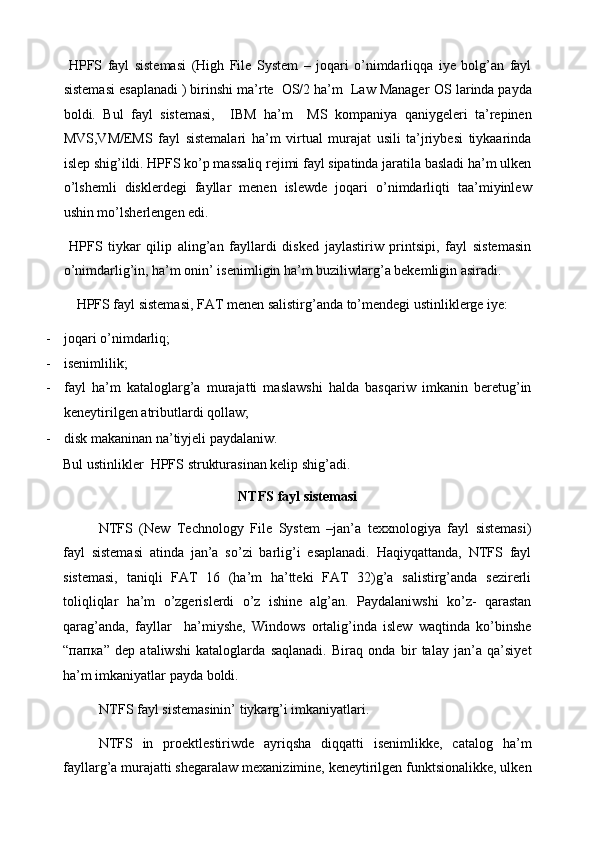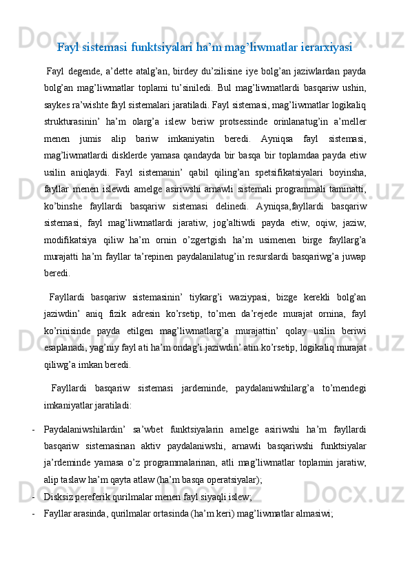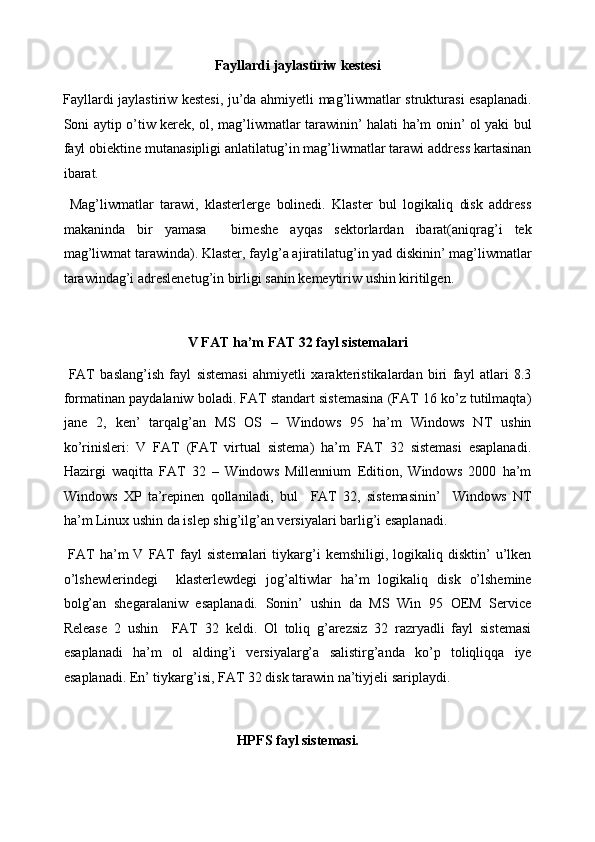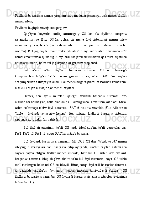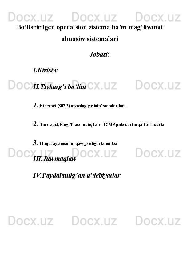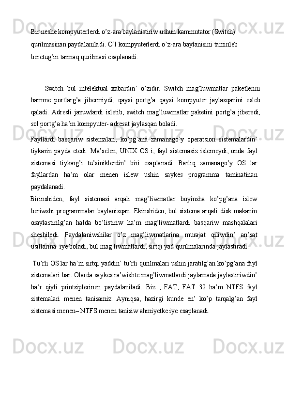 Bo’lisririlgen operatsion sistema ha’m mag’liwmat almasiw sistemalari