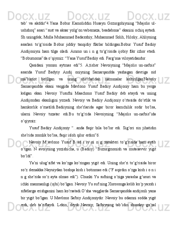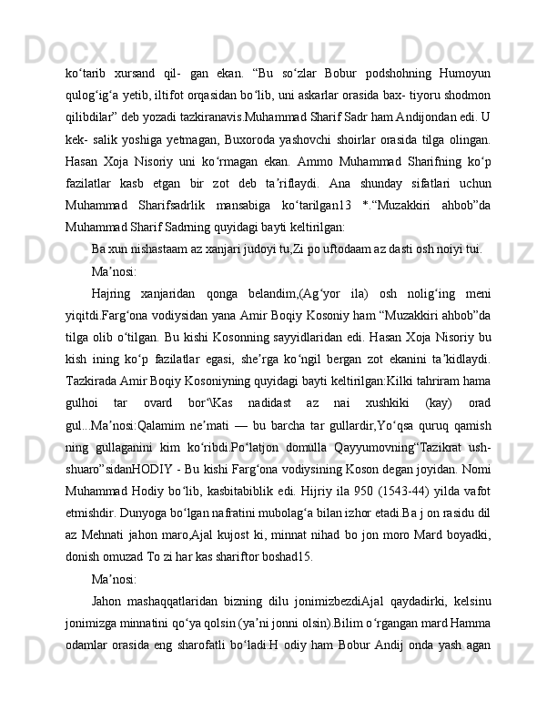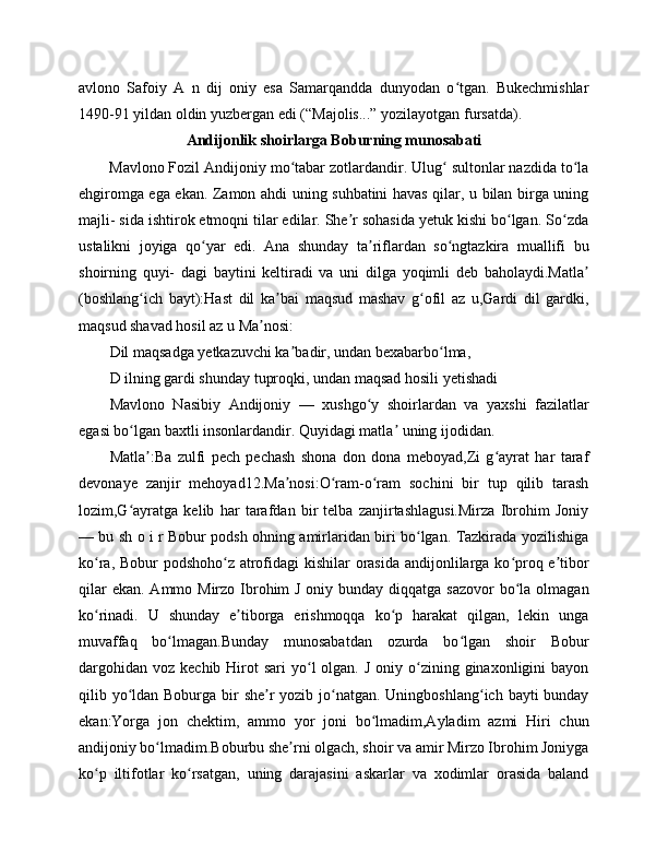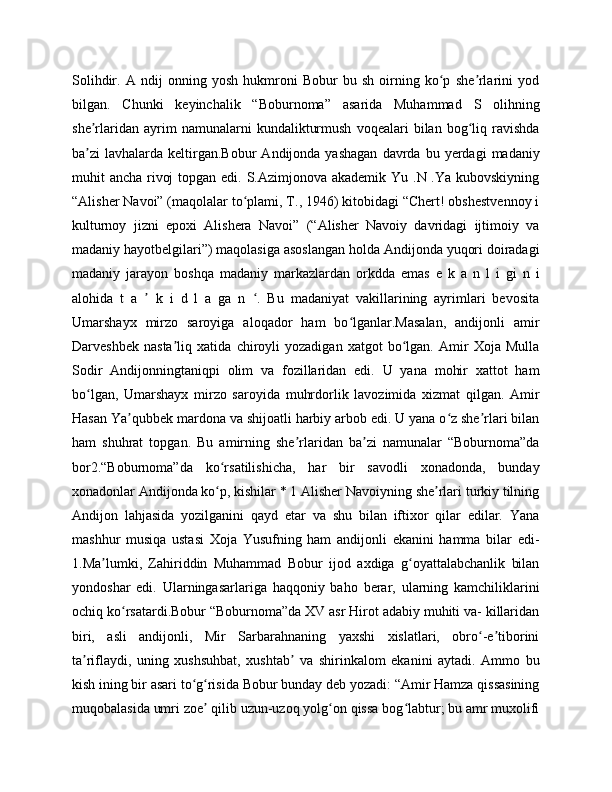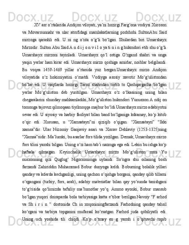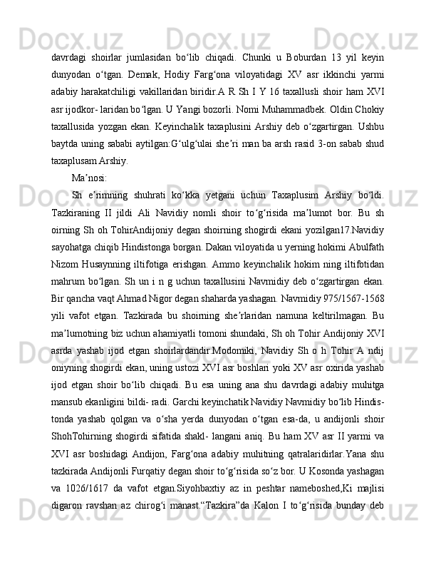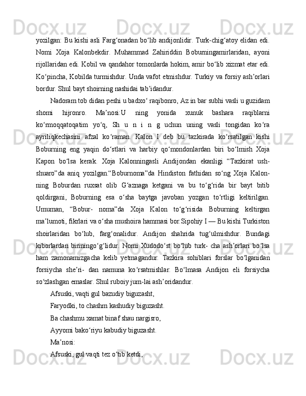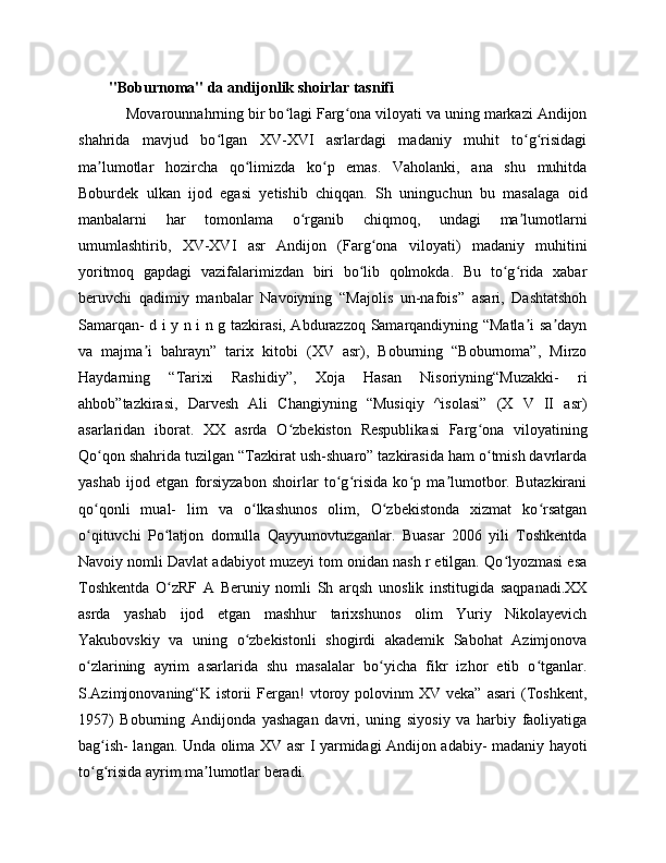 "BOBURNOMA" DA ANDIJONLIK SHOIRLAR TASNIFI