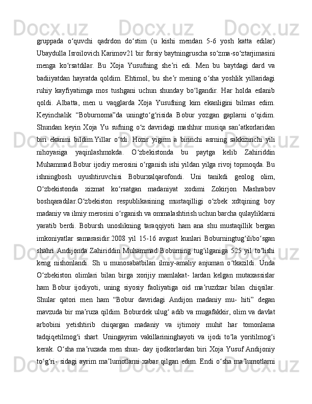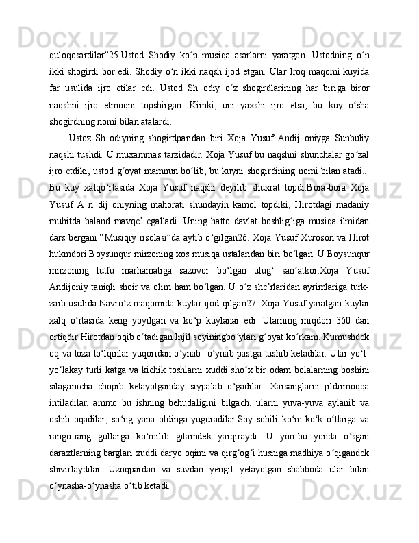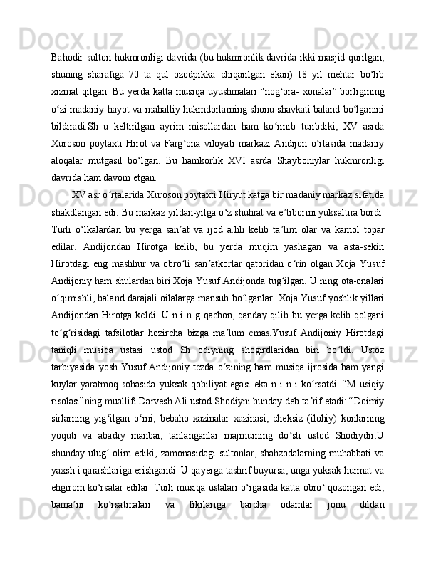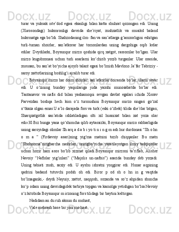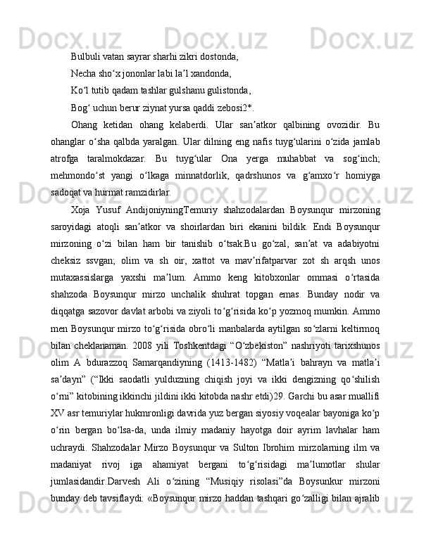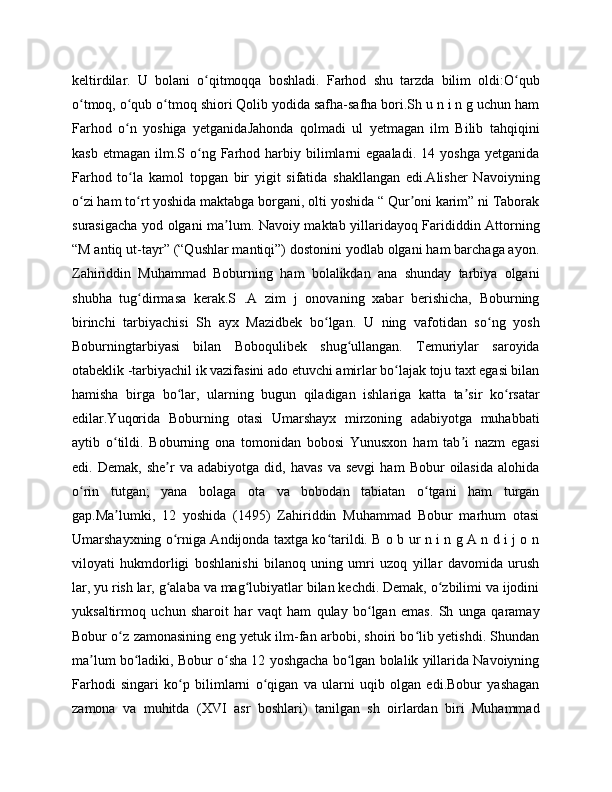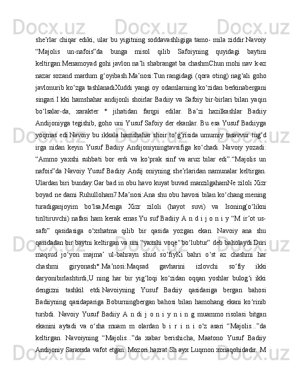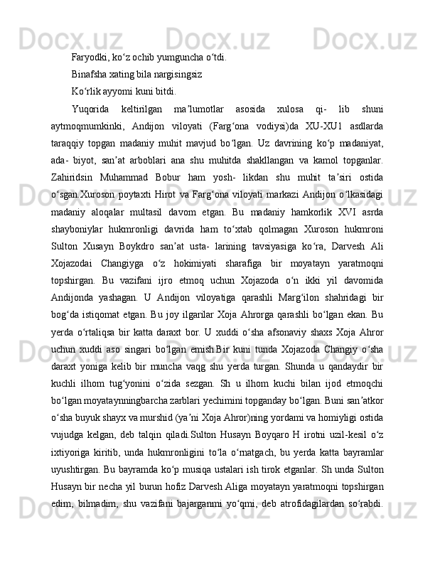 "BOBURNOMA" DA ANDIJONLIK SHOIRLAR TASNIFI