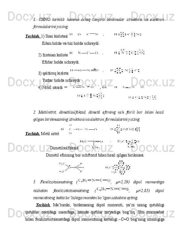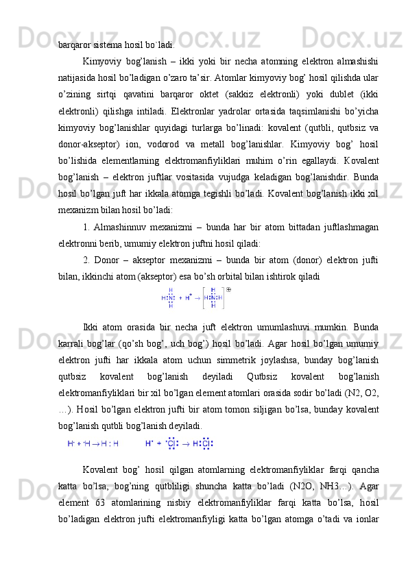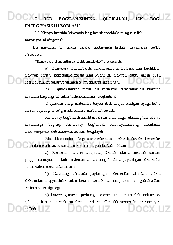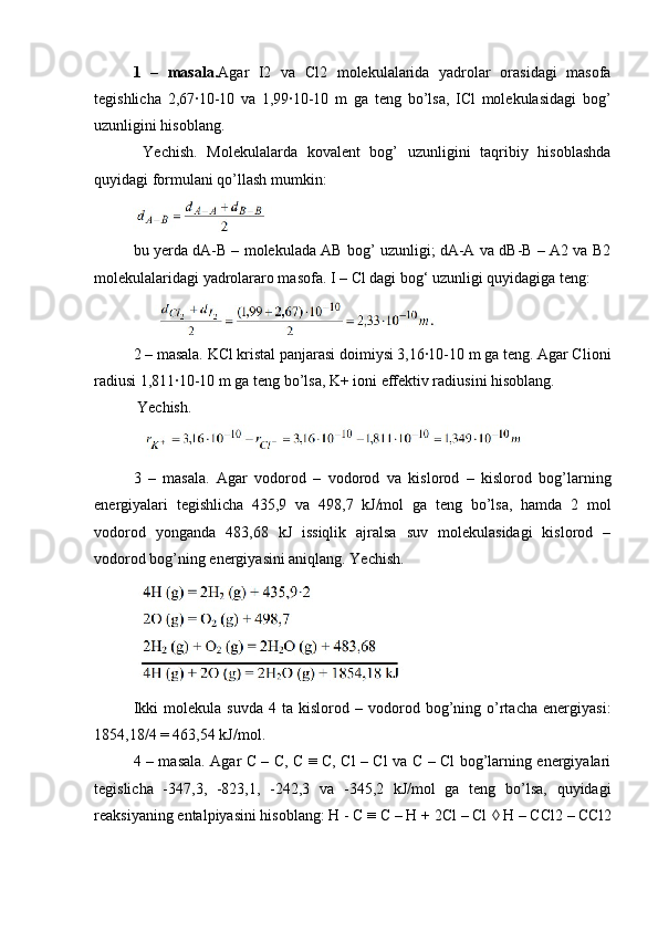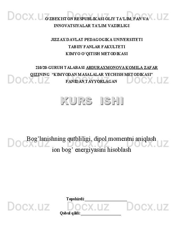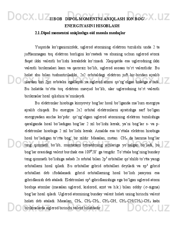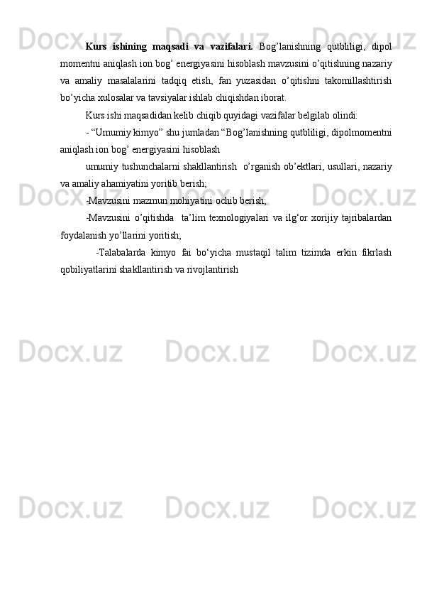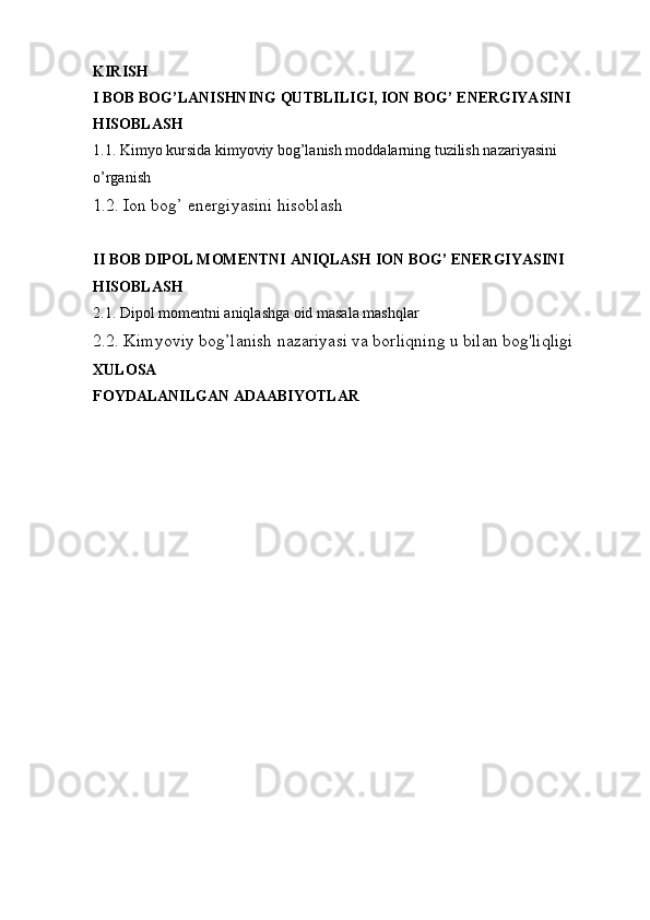 Bog’lanishning qutbliligi, dipol momentni aniqlash ion bog’ energiyasini hisoblash