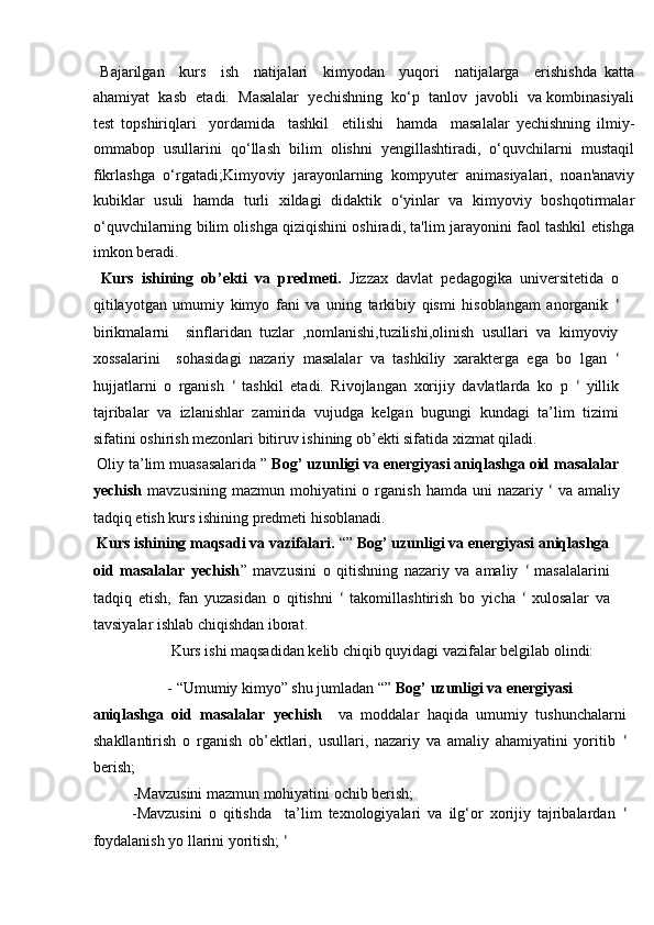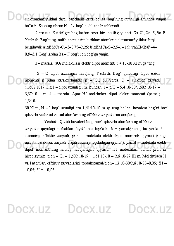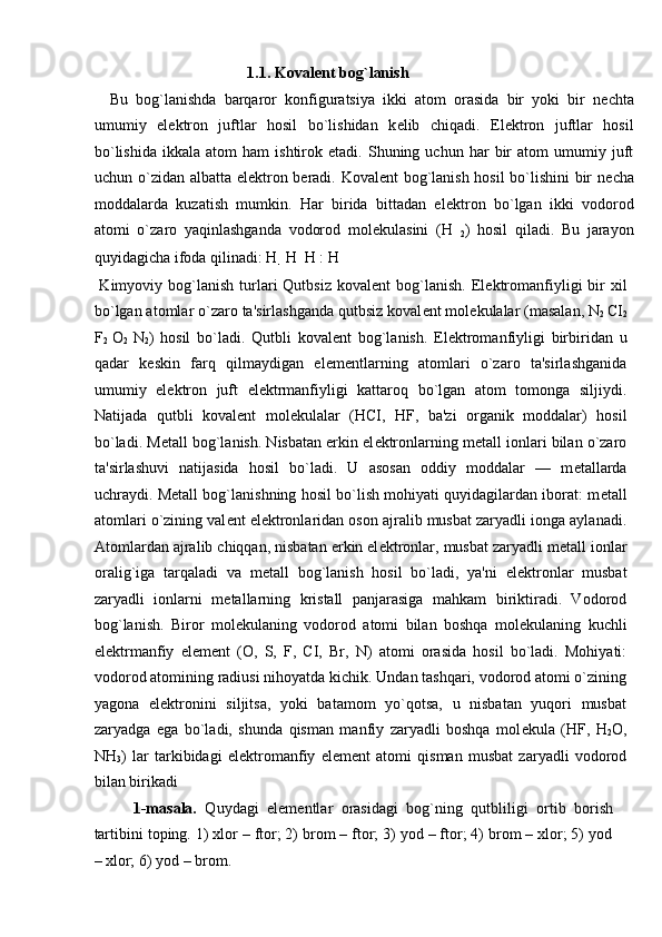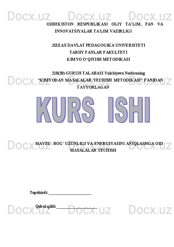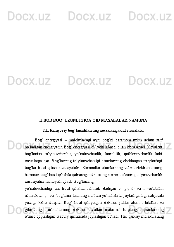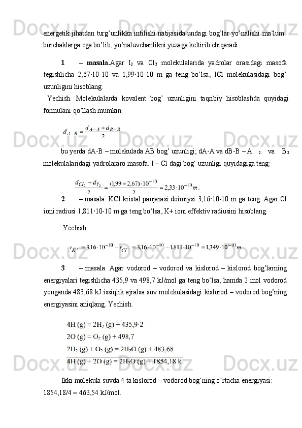 Bog’ uzunligi va energiyasini aniqlashga oid masalalar yechish