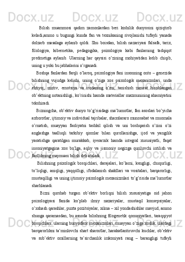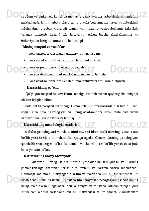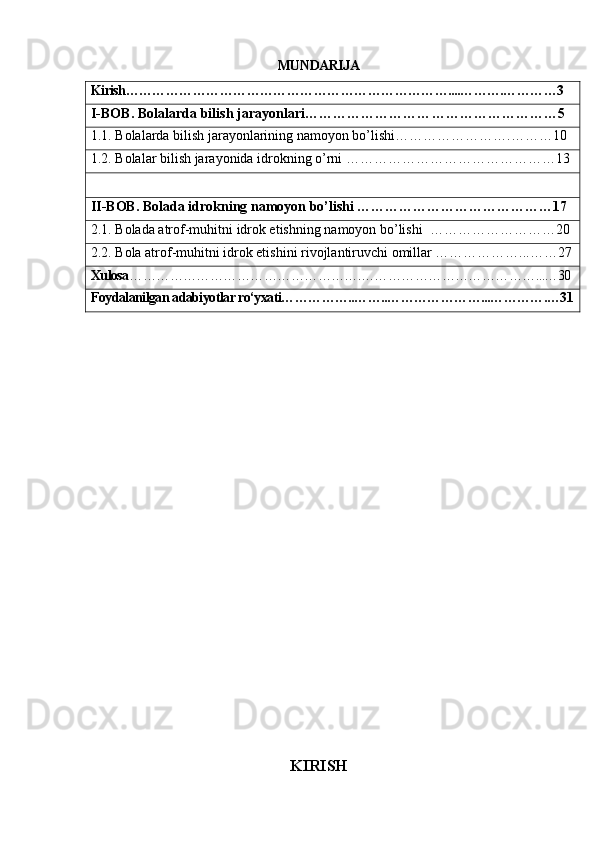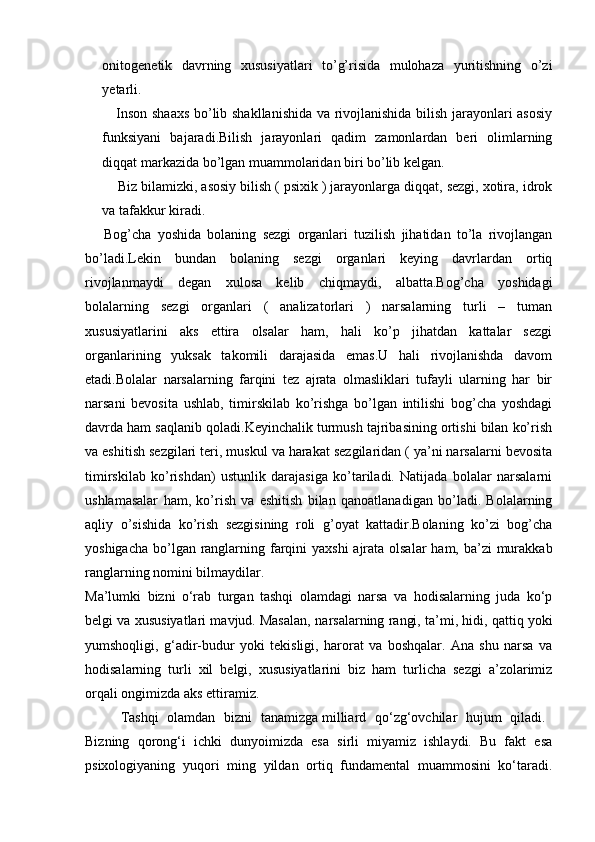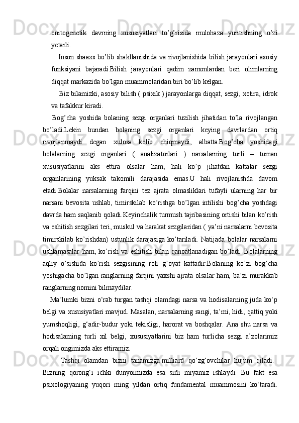 Bola atrof-muhitni idrok etishi haqida tushuncha