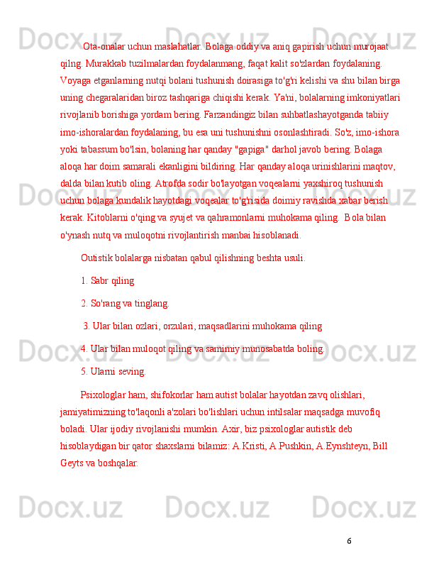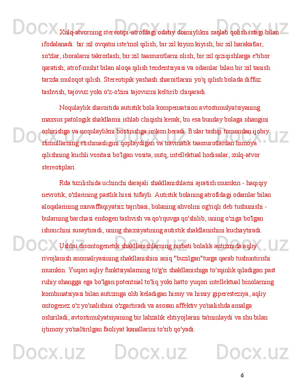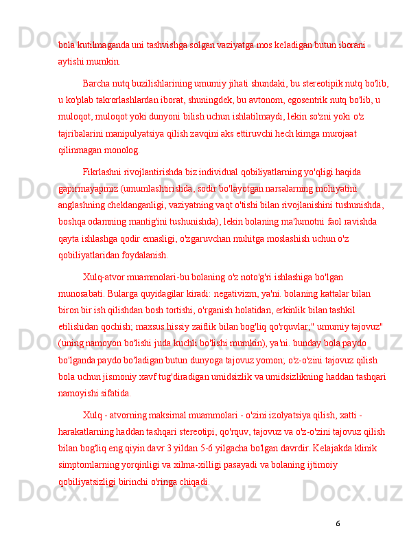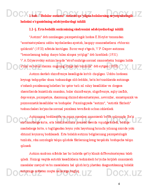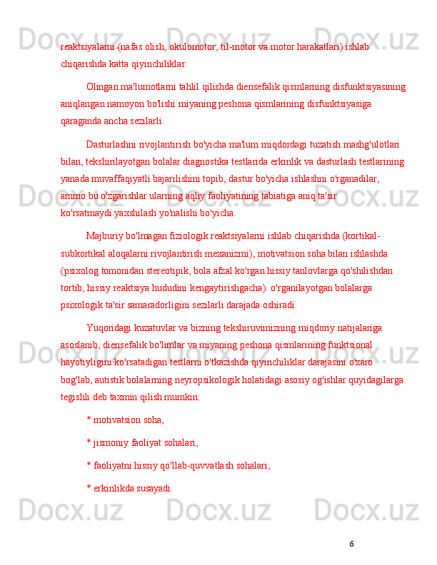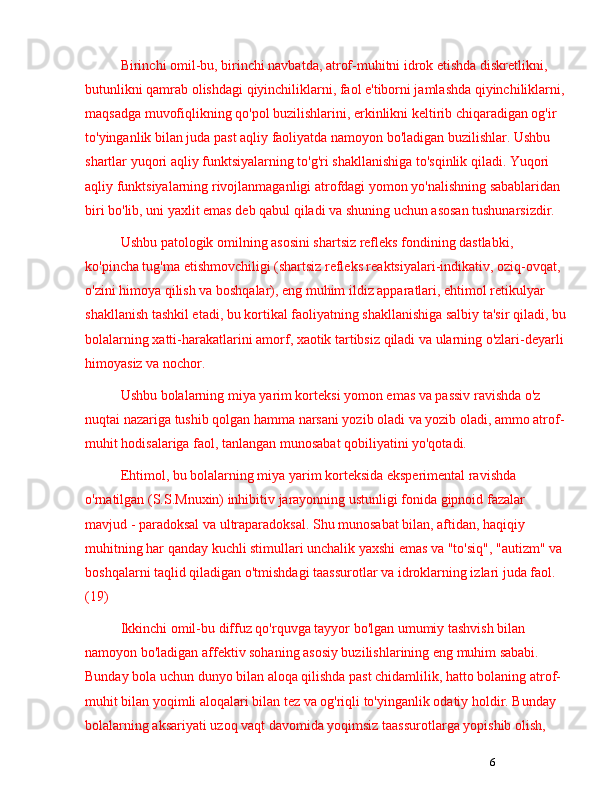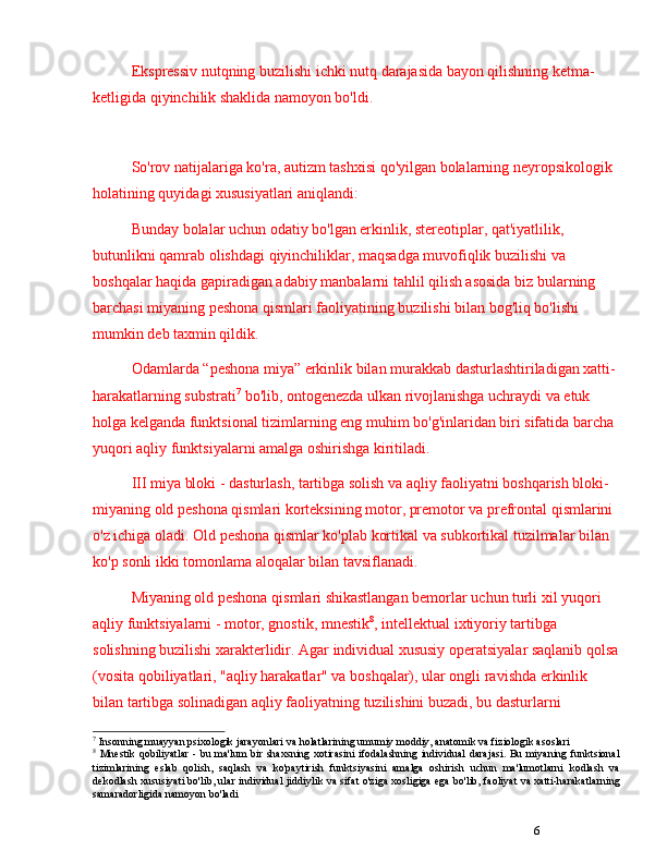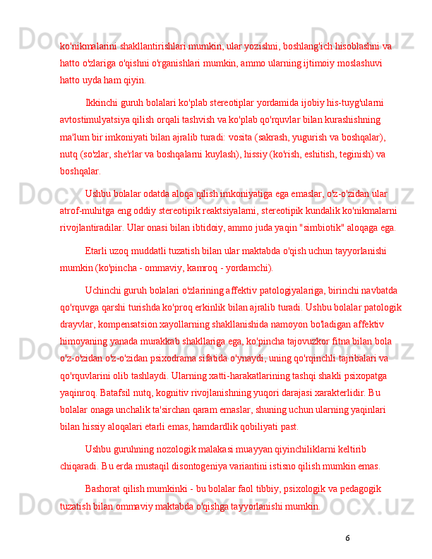 Bolalar autizmi" tashxisi qo'yilgan bolalarning neyropsixologik holatini o'rganish