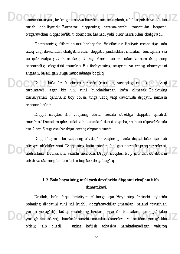 emas.   O'zboshimchalik   bilan   diqqat   asta-sekin   rivojlanadi,   uning   hajmi,