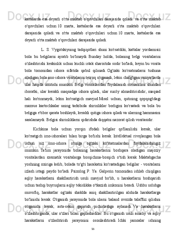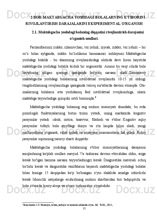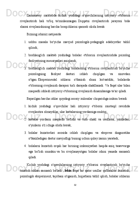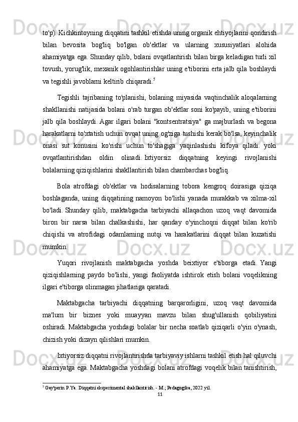 keladi.   Dastlab,   maktabgacha   yoshdagi   bolada   ixtiyoriy   e'tibor   juda