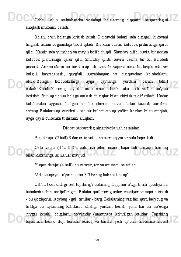 Maktabgacha   tarbiyachi   diqqatning   barqarorligini,   uzoq   vaqt   davomida