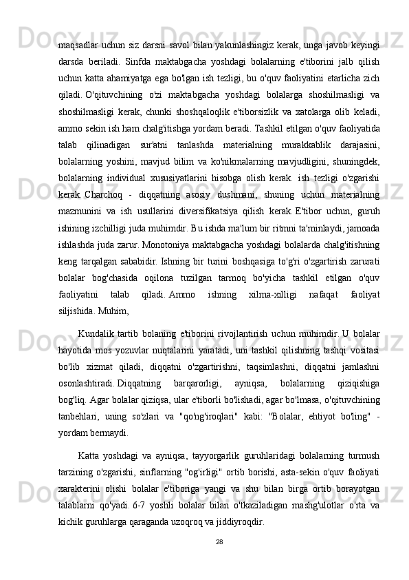 ravishda   ularga   qaratadi.   Agar   maktabgacha   yoshdagi   bolalarda   ixtiyorsiz   diqqat