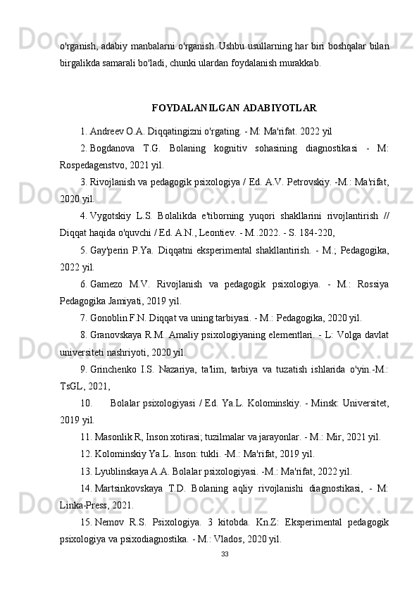 19. Nurkova V.V. Psixologiya. - M.: Yurayt, 2019 yil.