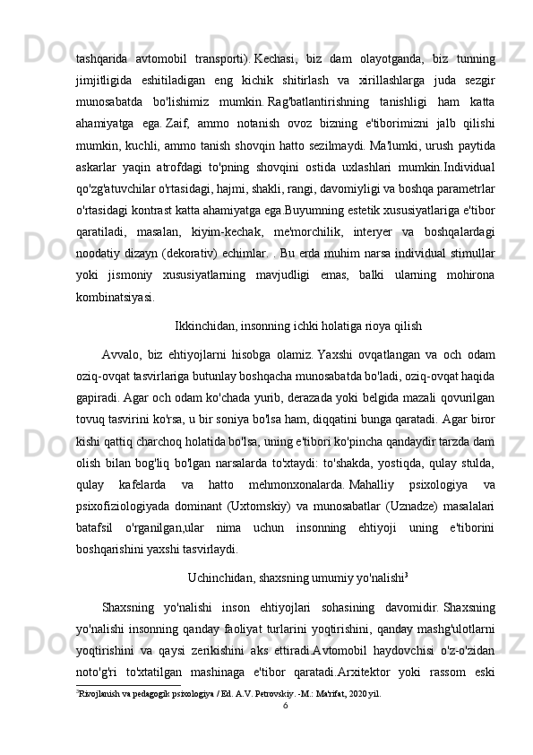 Rivojlanish va pedagogik psixologiya / Ed. A.V. Petrovskiy. -M.: Ma'rifat, 2020 yil.