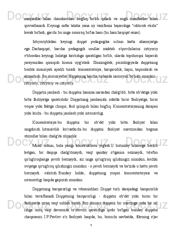vazifalarini   bajarishda   to'plagan   tajribasi   katta   ahamiyatga   ega.   Ixtiyoriy   diqqatni