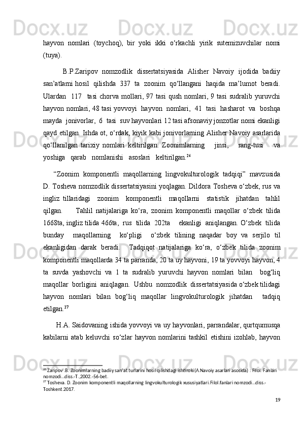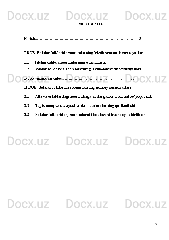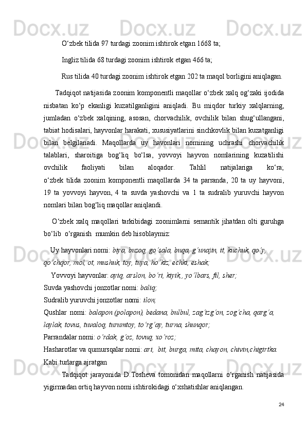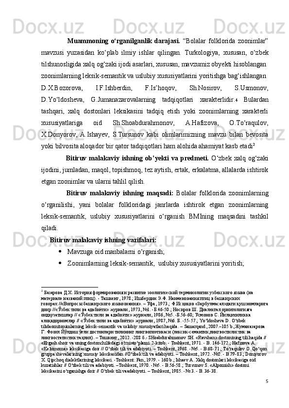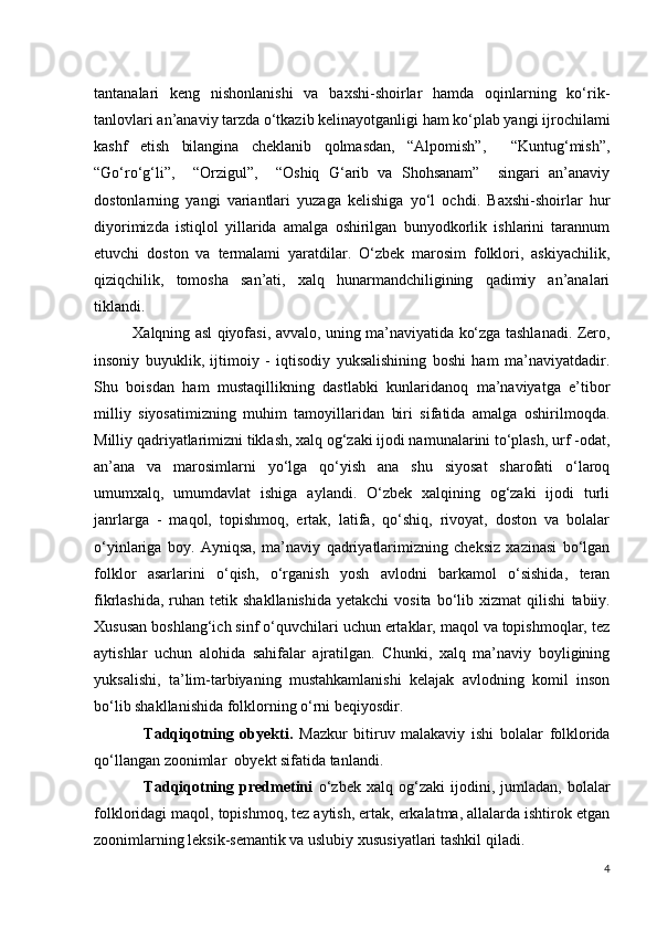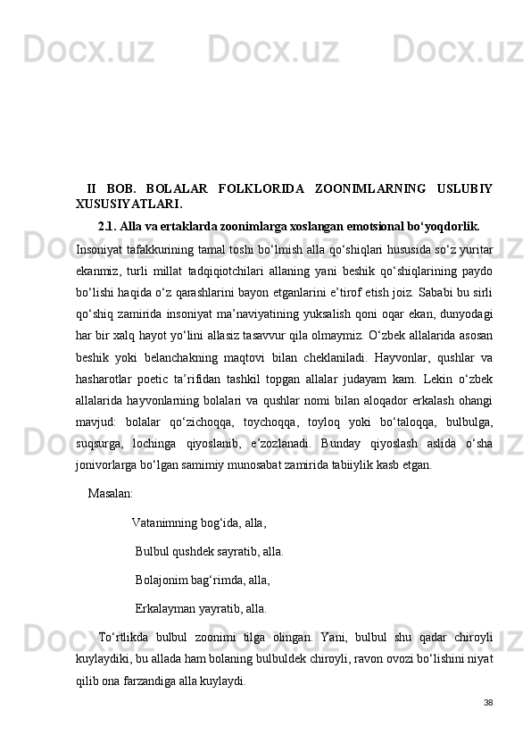 II BOB Bolalar folklorida zoonimlarning uslubiy xususiyatlari