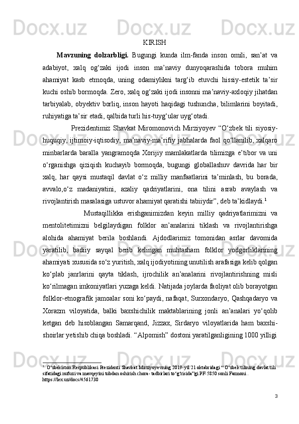 Kirish… … … … … … … … … … … … … … … … … … … … … 3