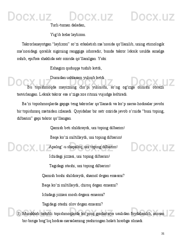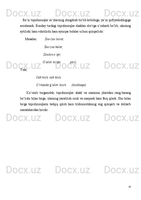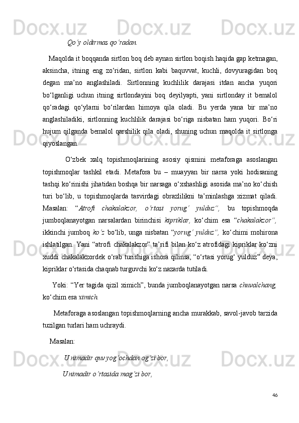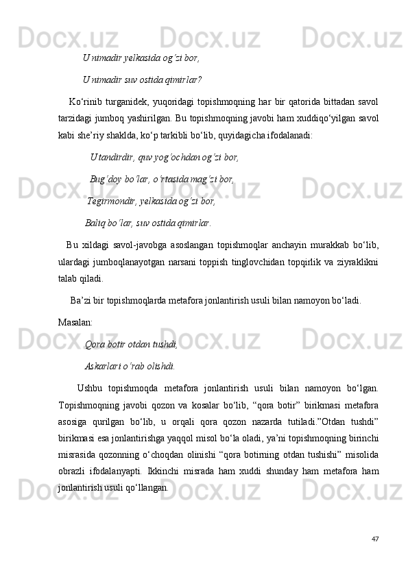 2.2. Topishmoq va tez aytishlarda metaforalarning qo‘llanilishi