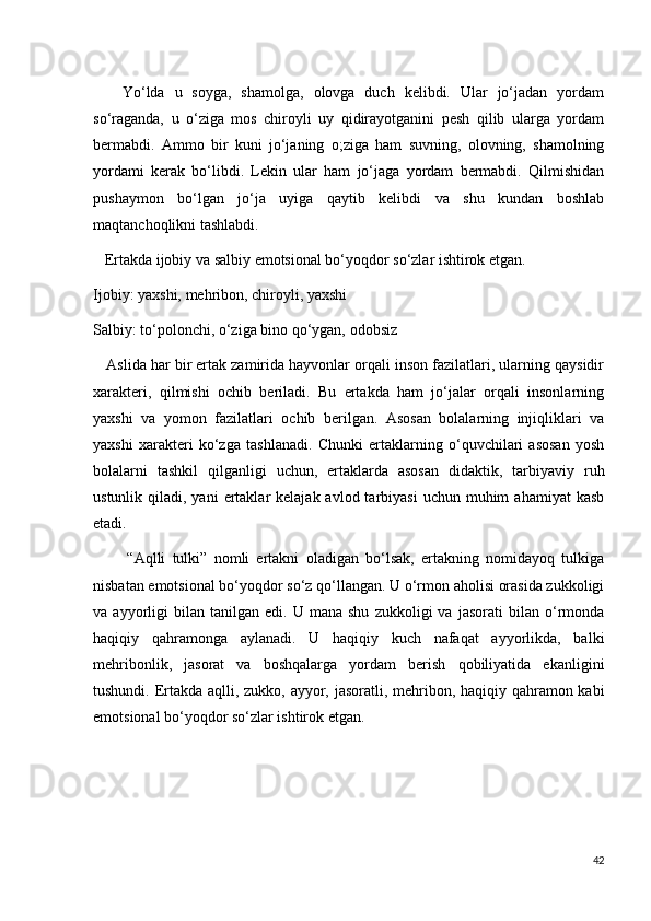 2.1. Alla va ertaklardagi zoonimlarga xoslangan emotsional bo‘yoqdorlik