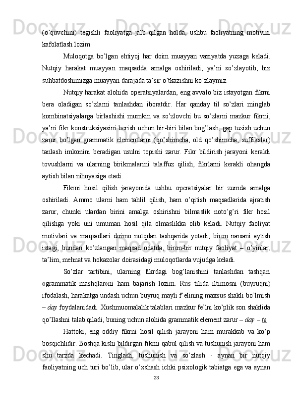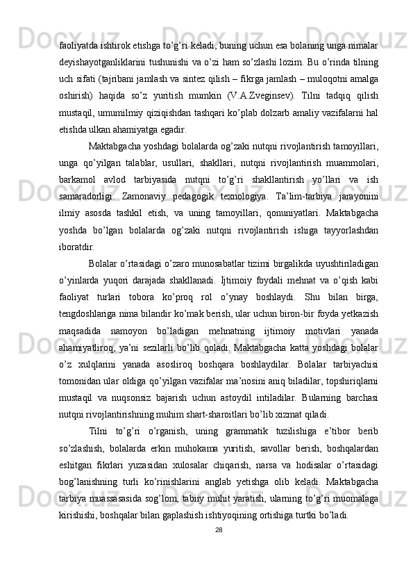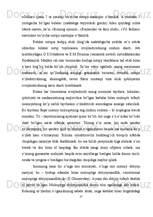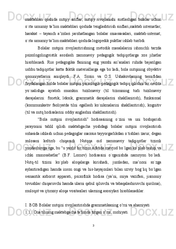 Bolalar nutqini rivojlantirishda grammatikaning o'rni va ahamiyati