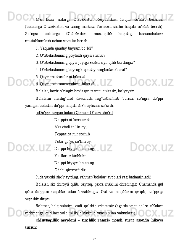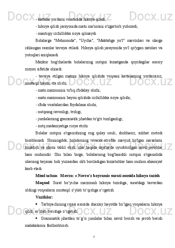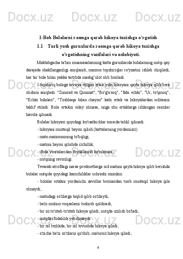 Bolalarni rasmga qarab hikoya tuzishga o‘rgatish