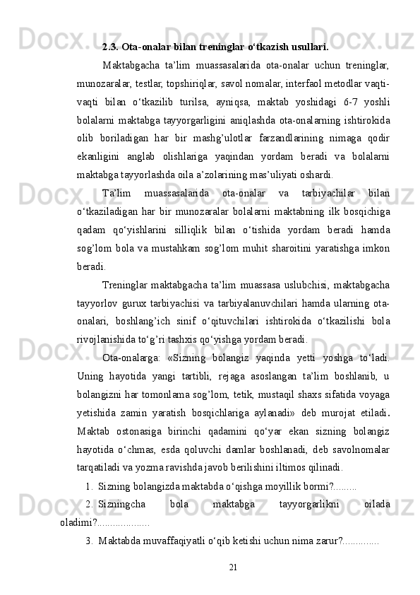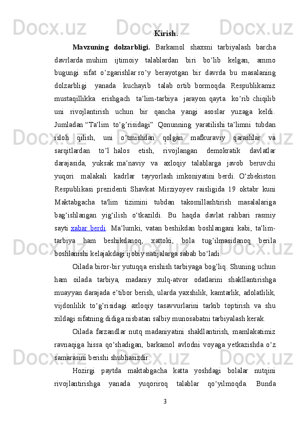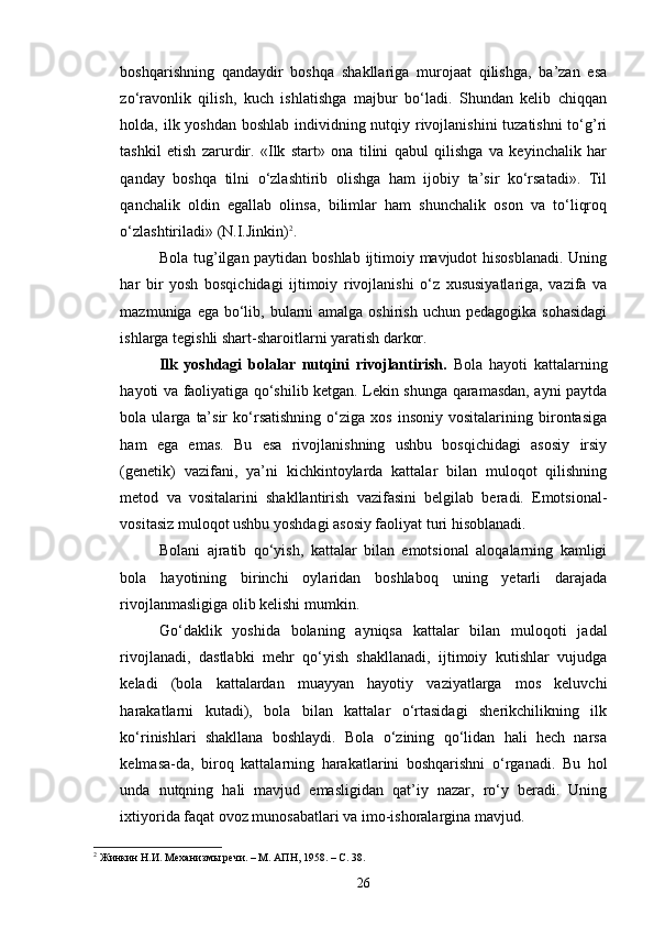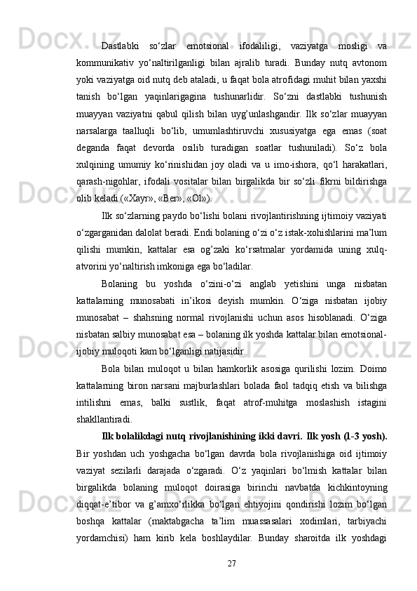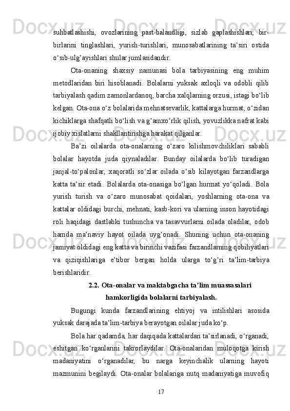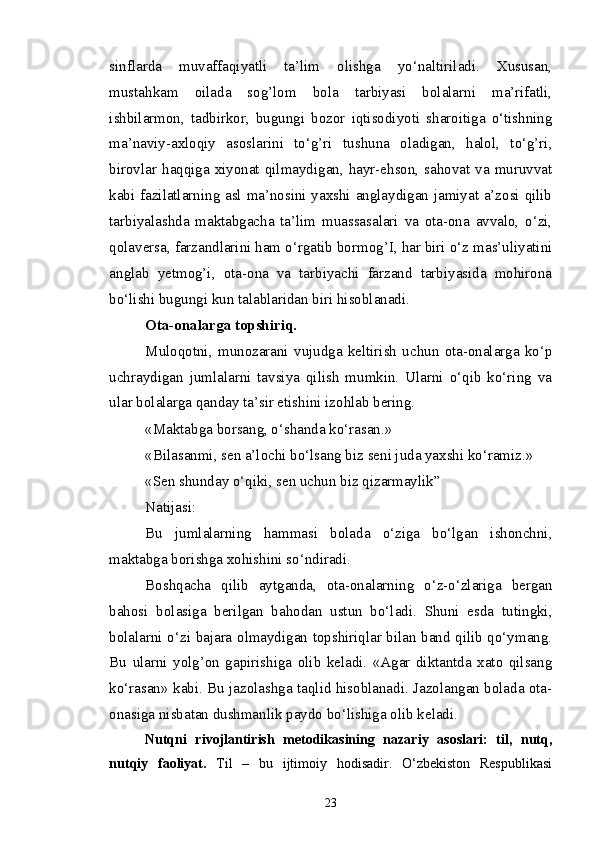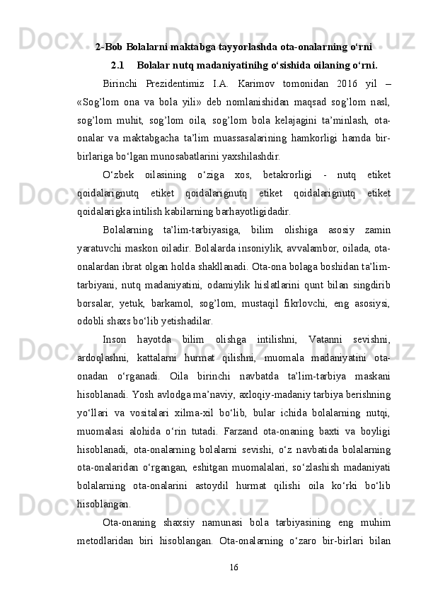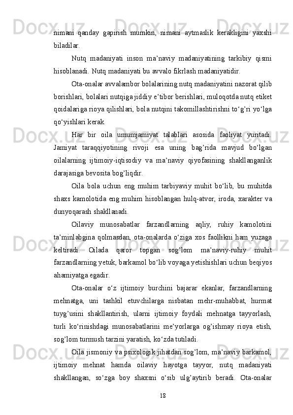 BOLALARNING NUTQ MADNIYATINI O'SISHIDA OILANING O’RNI