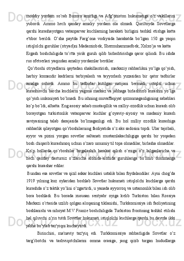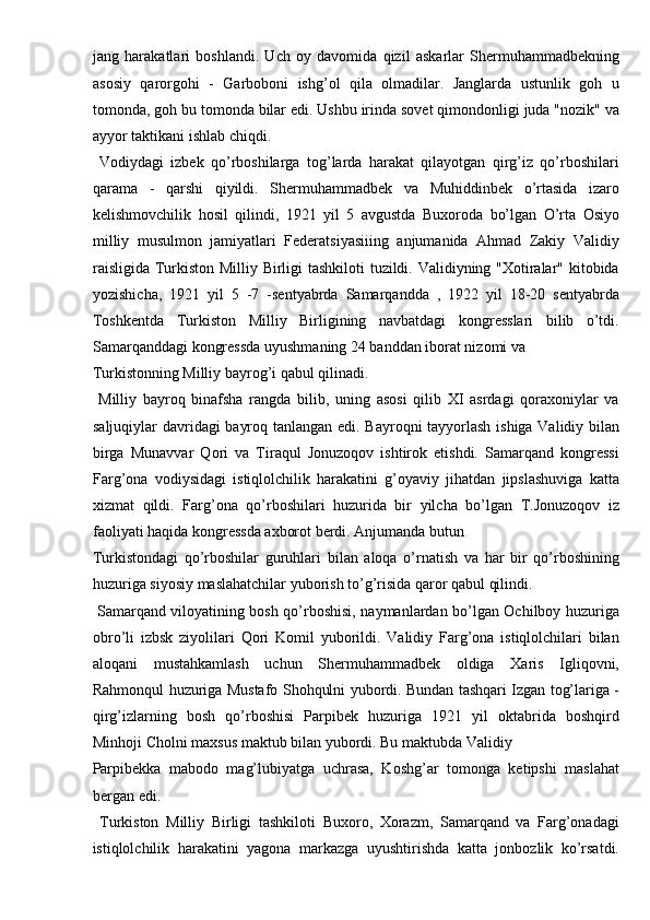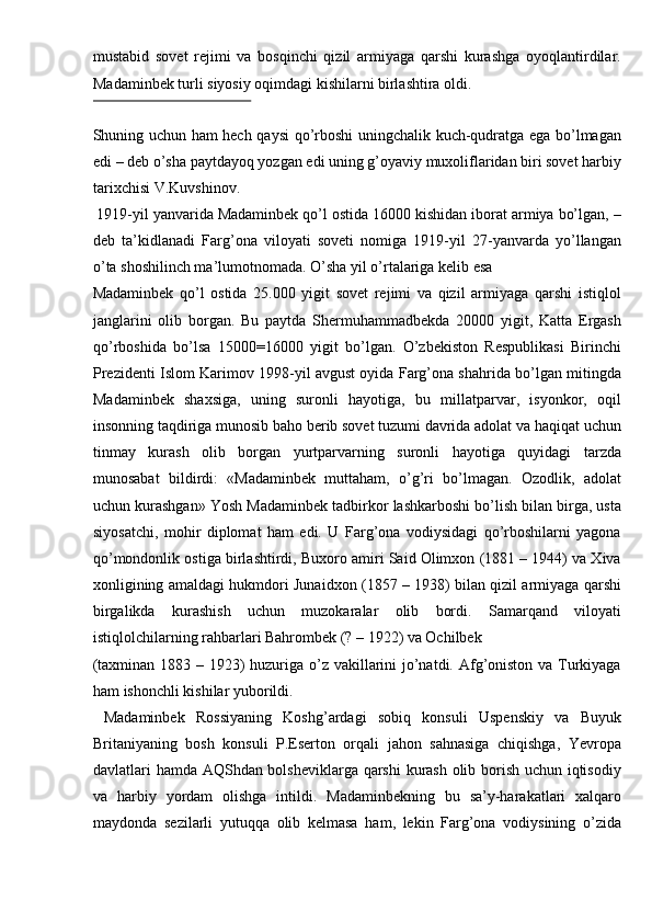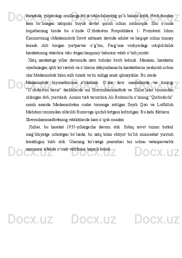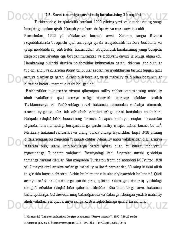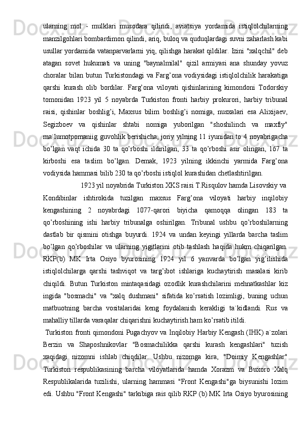 Bolsheviklar tuzumiga qarshi kurash harakatlari