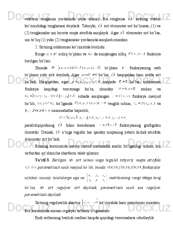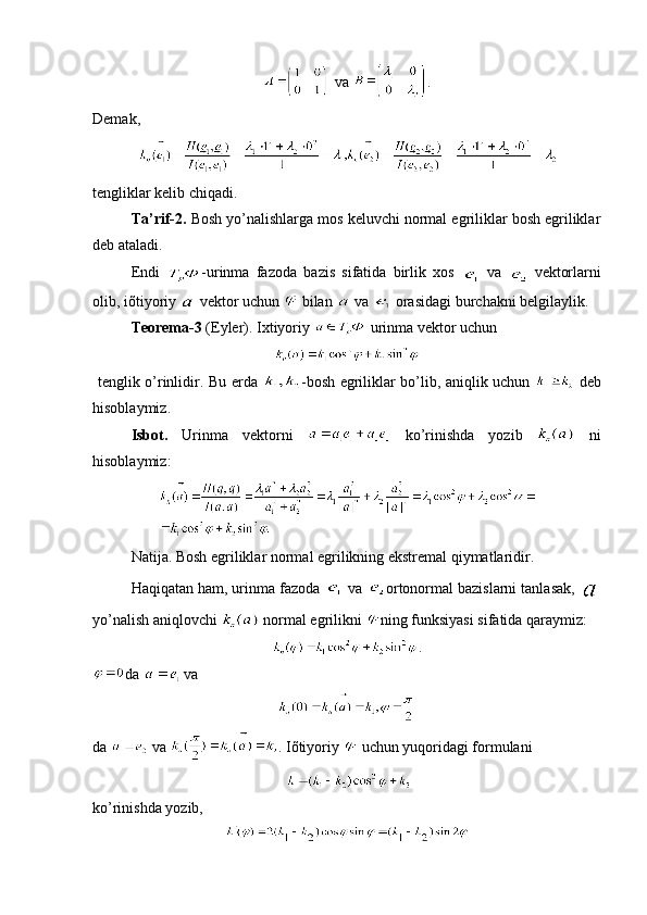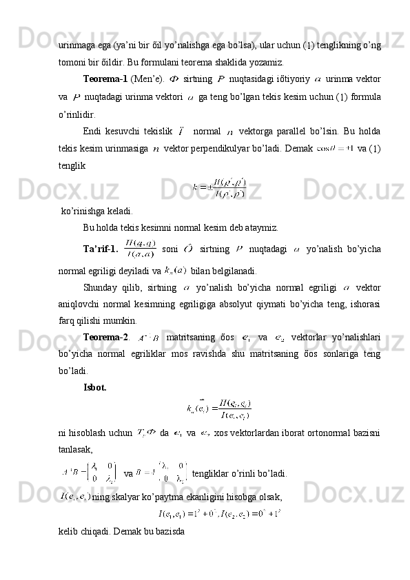 Geometriyadan sirt , egriliklar haqida malumot berilgan