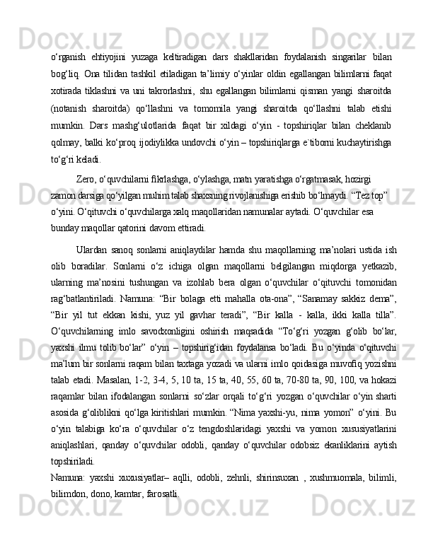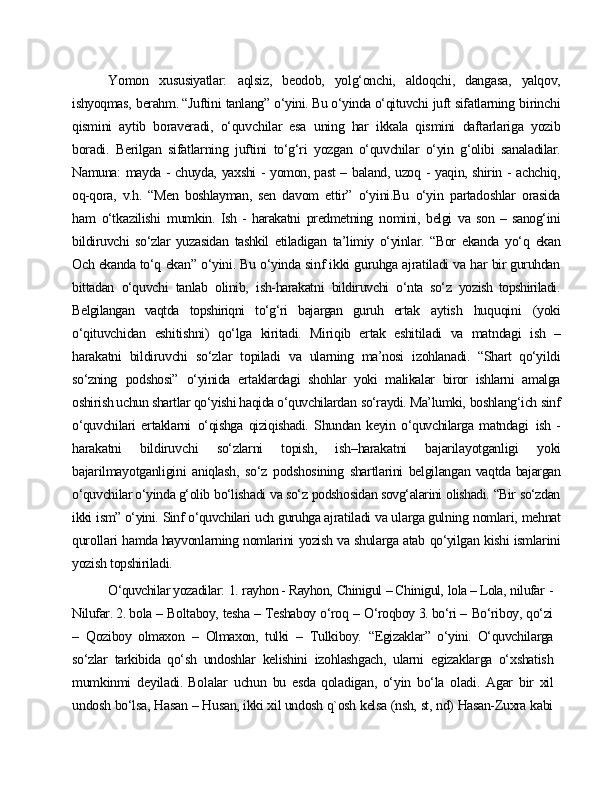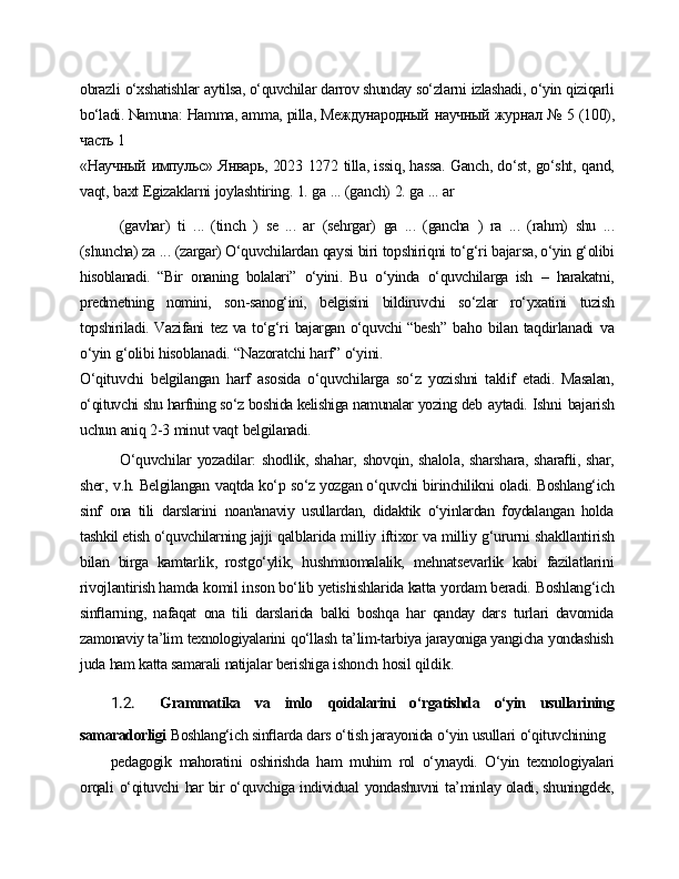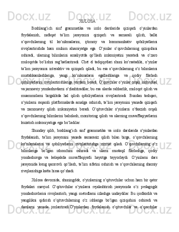 Boshlang‘ıch sınf grammatık va ımlo darslarıda qızıqarlı o‘yınlardan foydalanısh