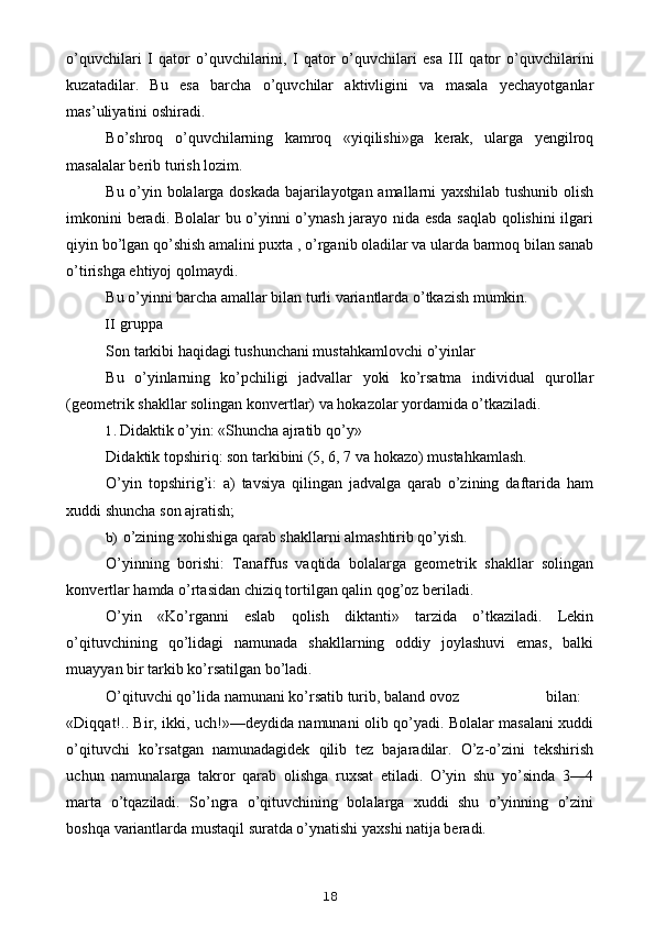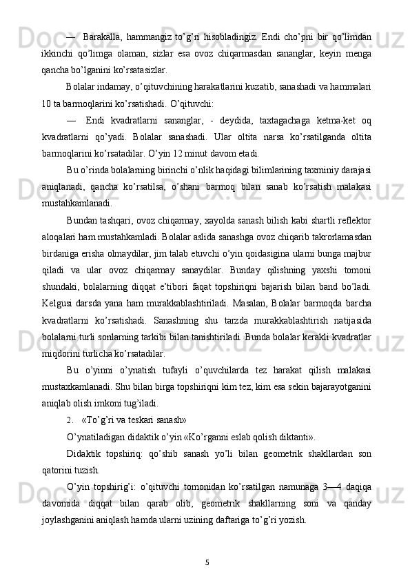 Boshlang’ich sinf matematika darslarida didaktik o’yinlardan foydalanish