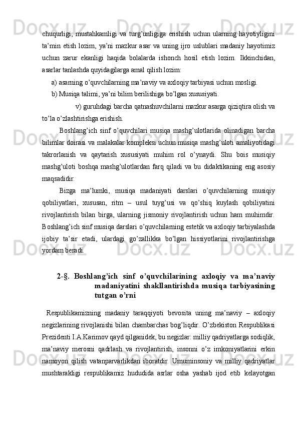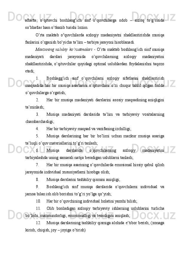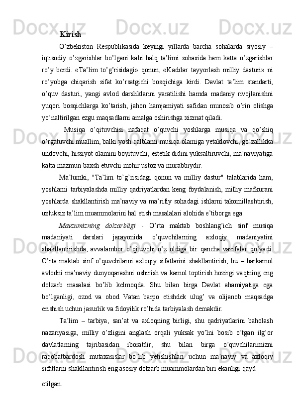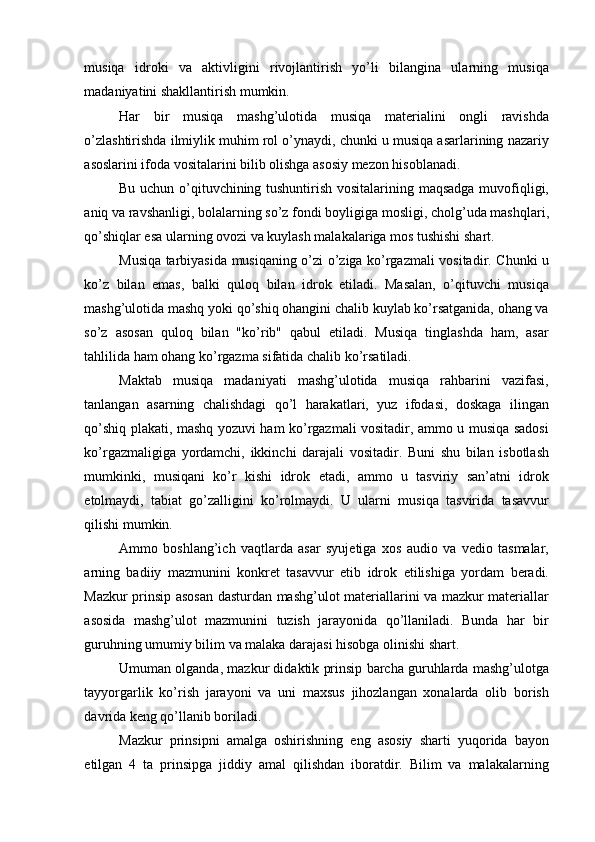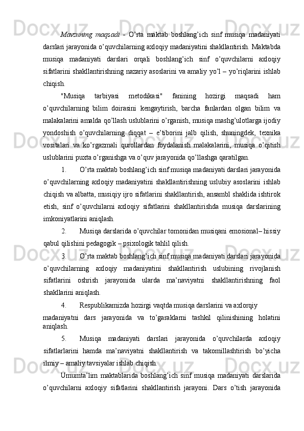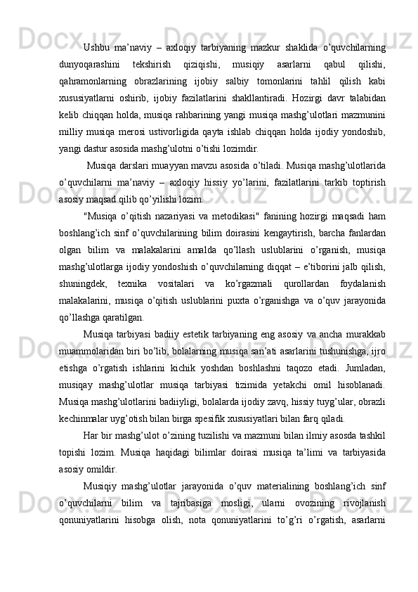 Boshlang’ich sinf musiqa darslari jarayonida axloqiy madaniyatni shakllantirish