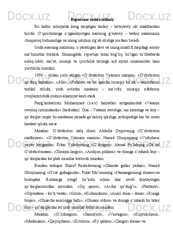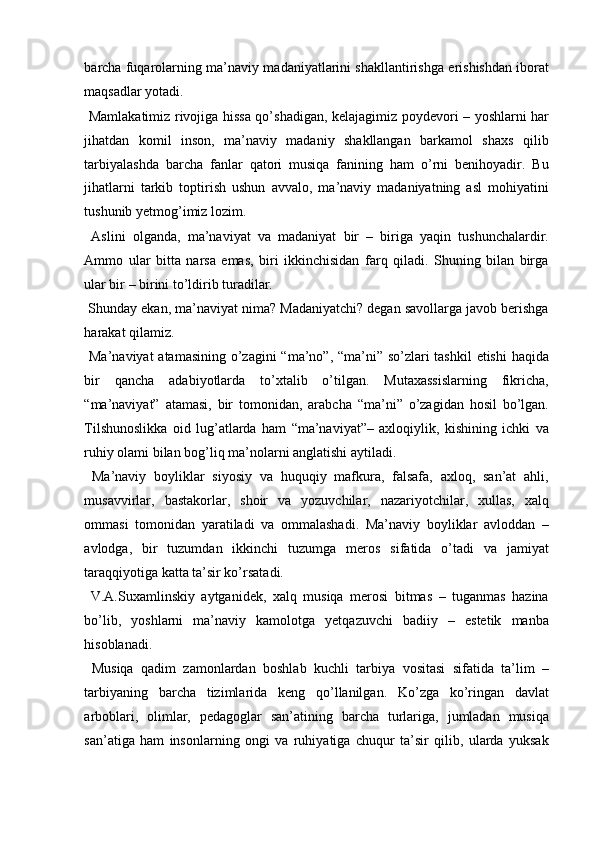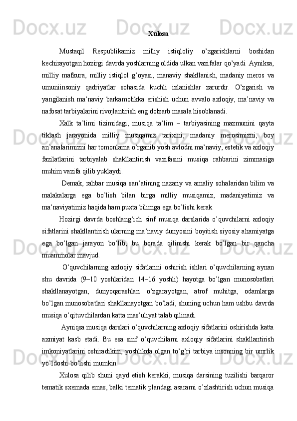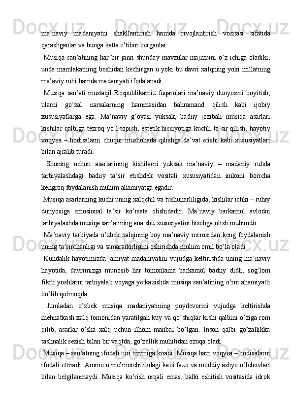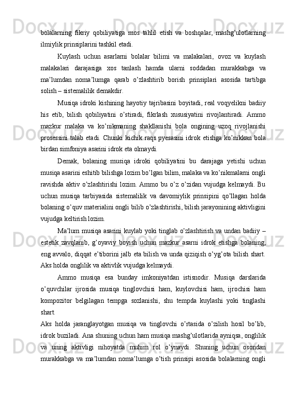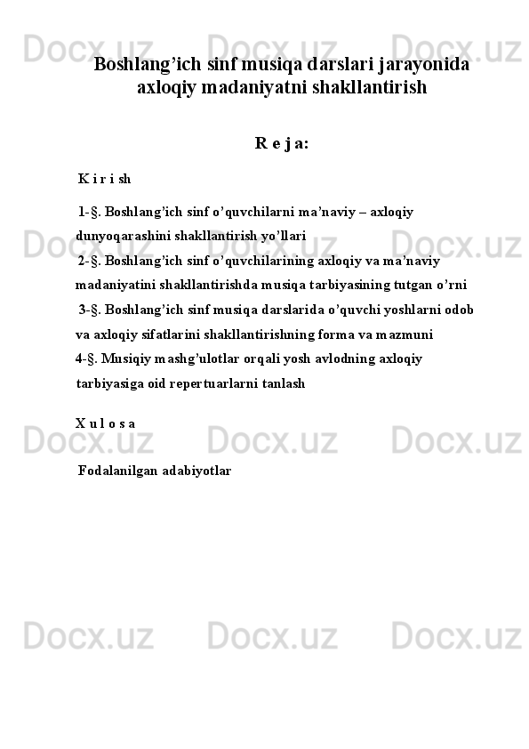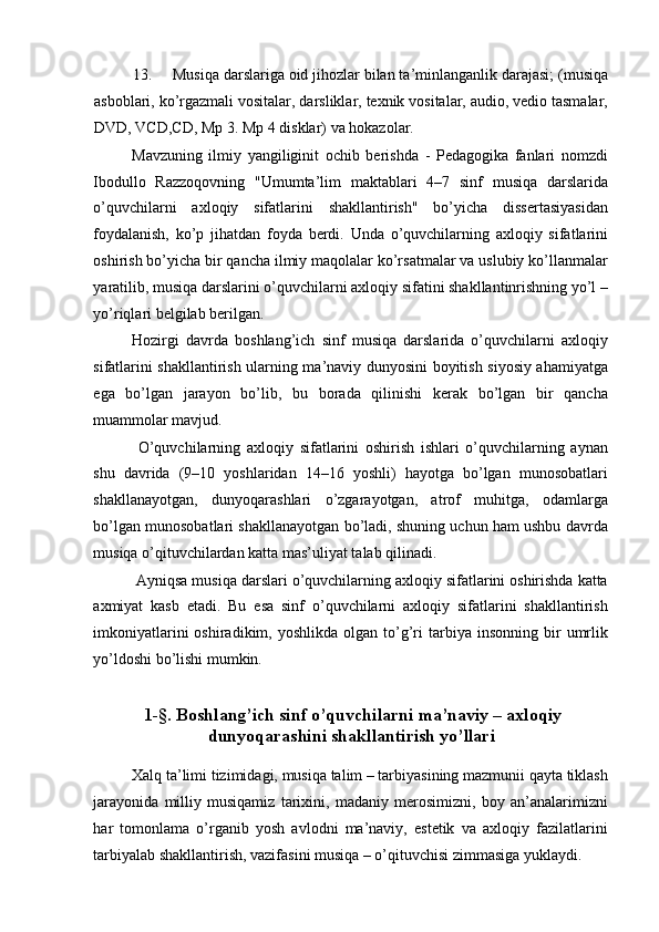 Boshlang’ich sinf musiqa darslari jarayonida axloqiy madaniyatni shakllantirish