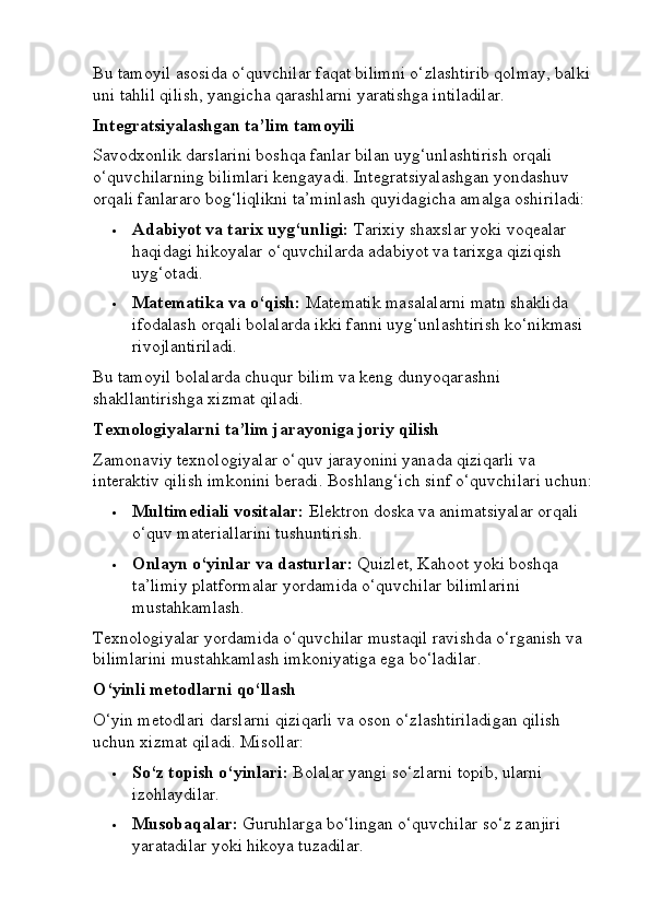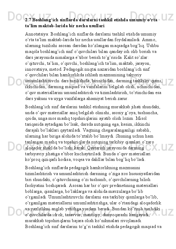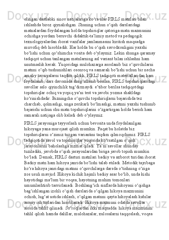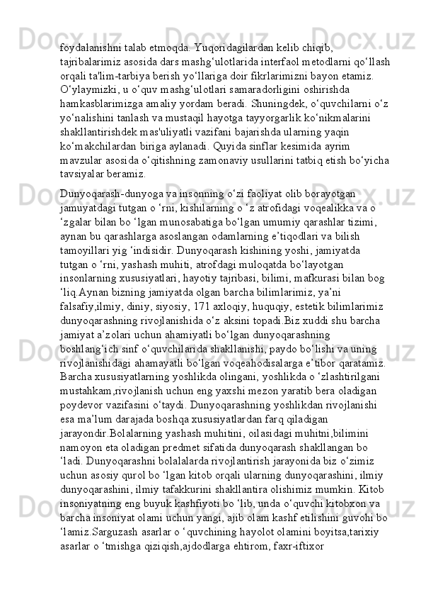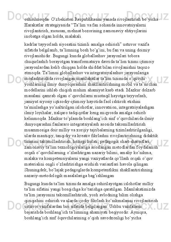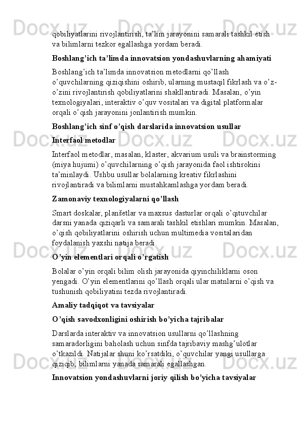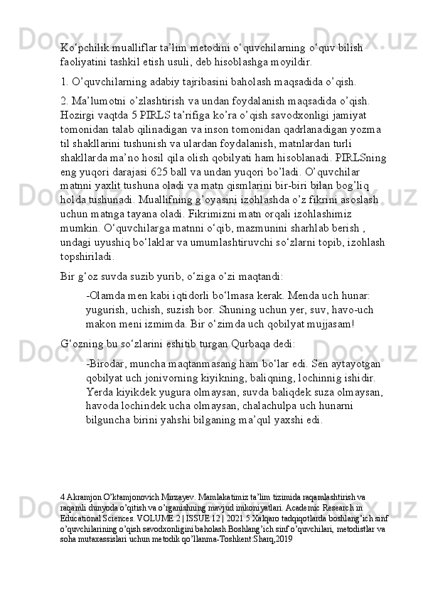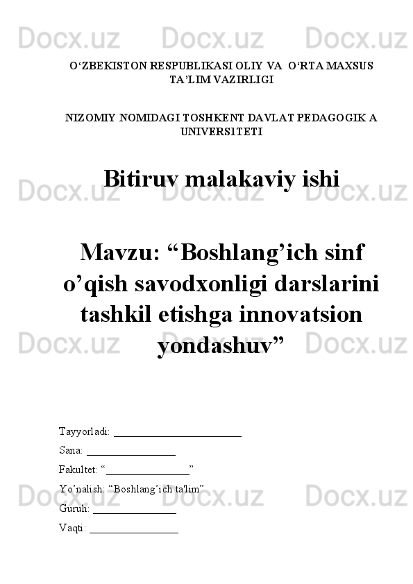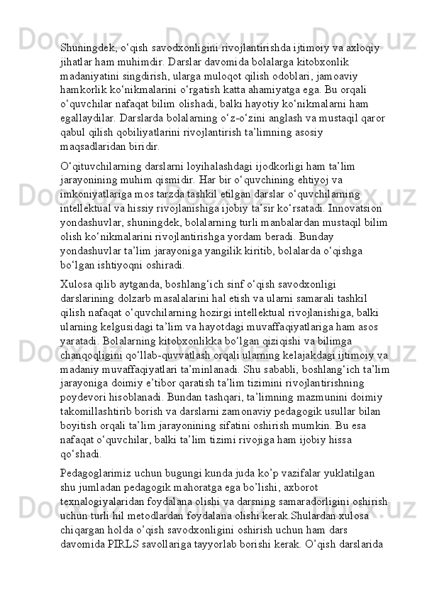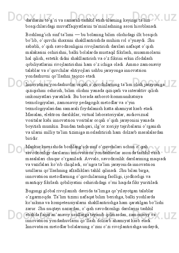 Boshlang’ich sinf o’qish savodxonligi darslarini tashkil etishga innovatsion yondashuv