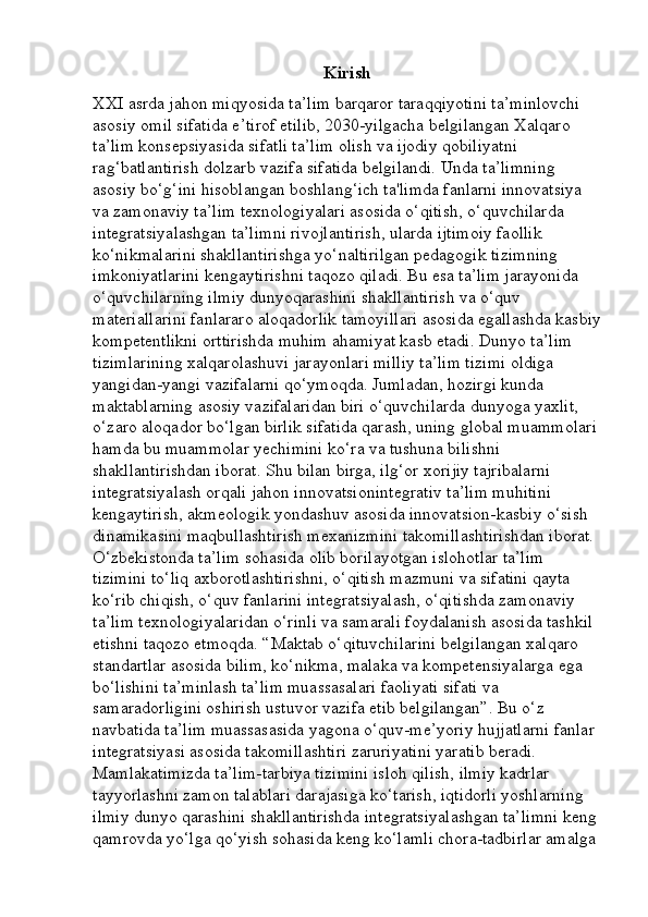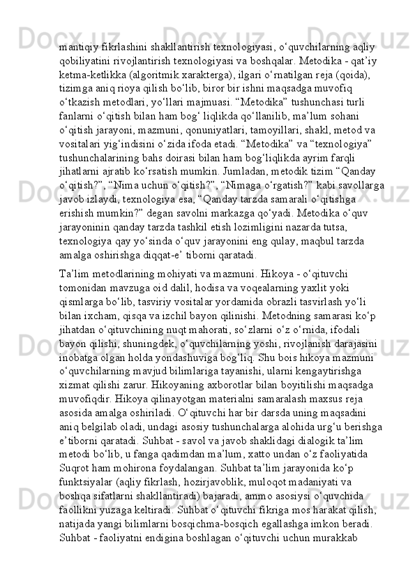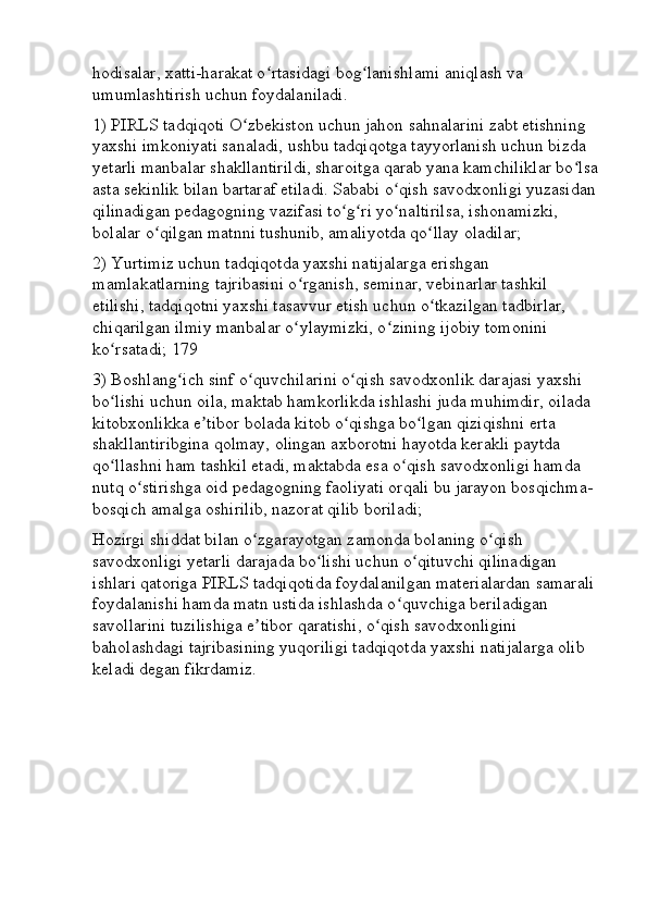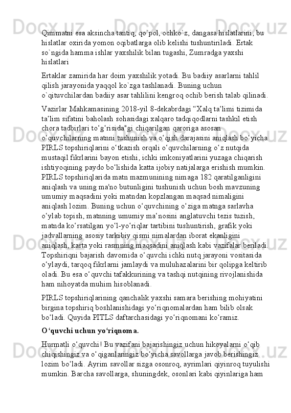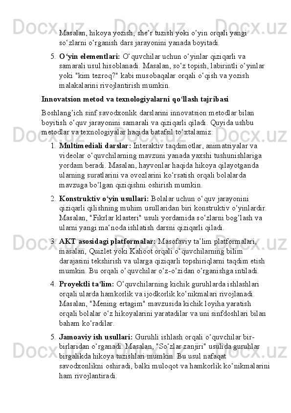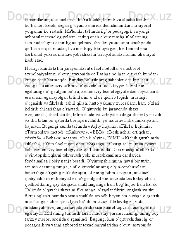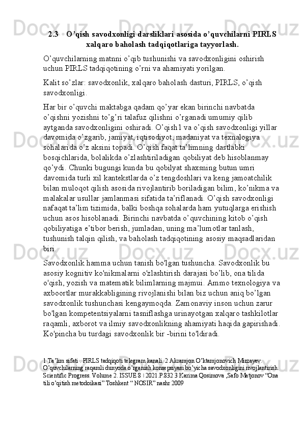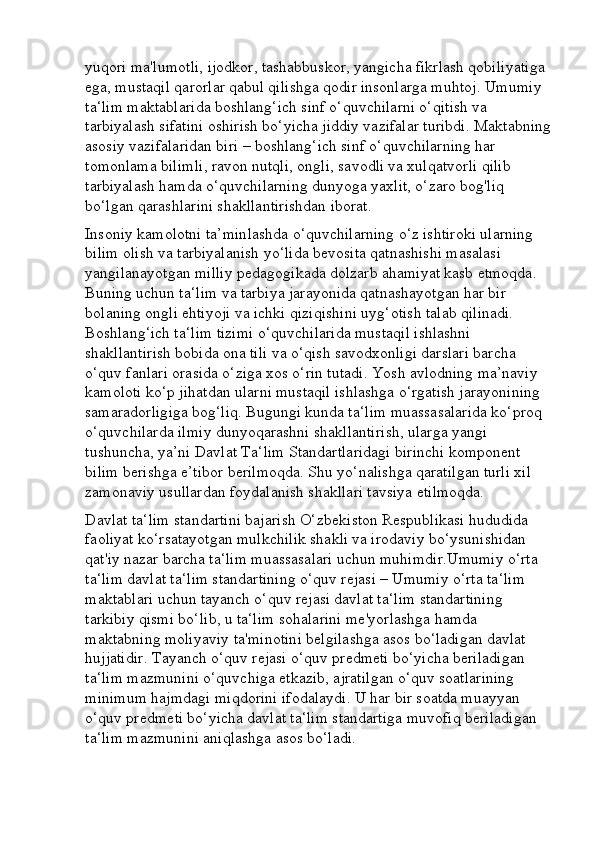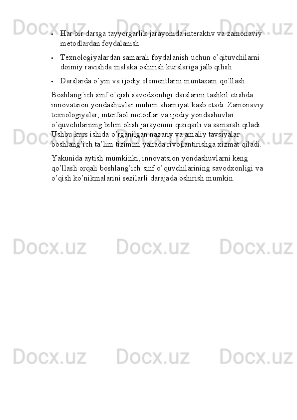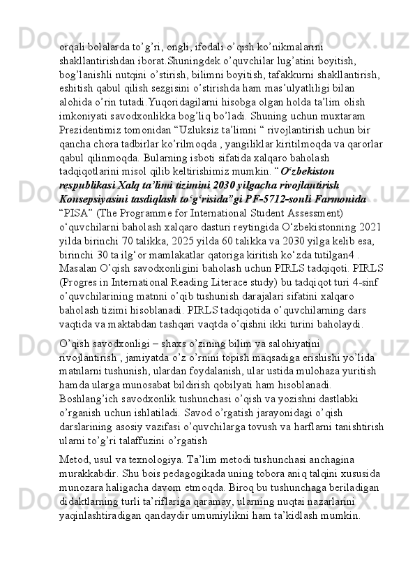 Boshlang’ich sinf o’qish savodxonligi darslarini tashkil etishga innovatsion yondashuv