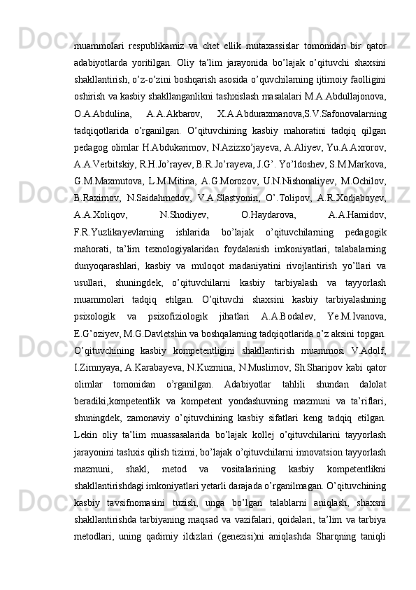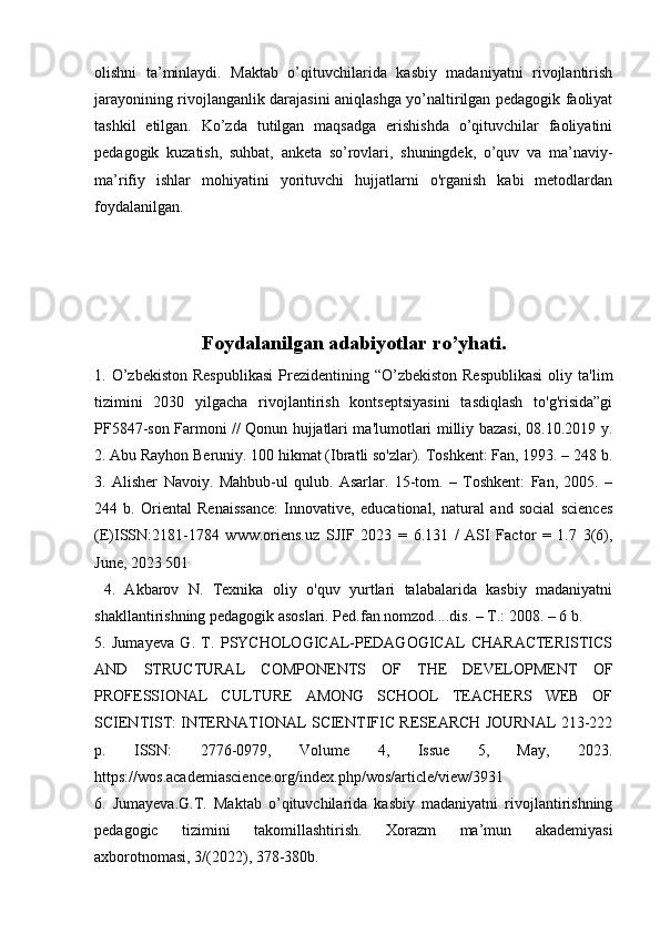 Boshlang’ich sinf o’qituvchisining kasbiy madaniyati