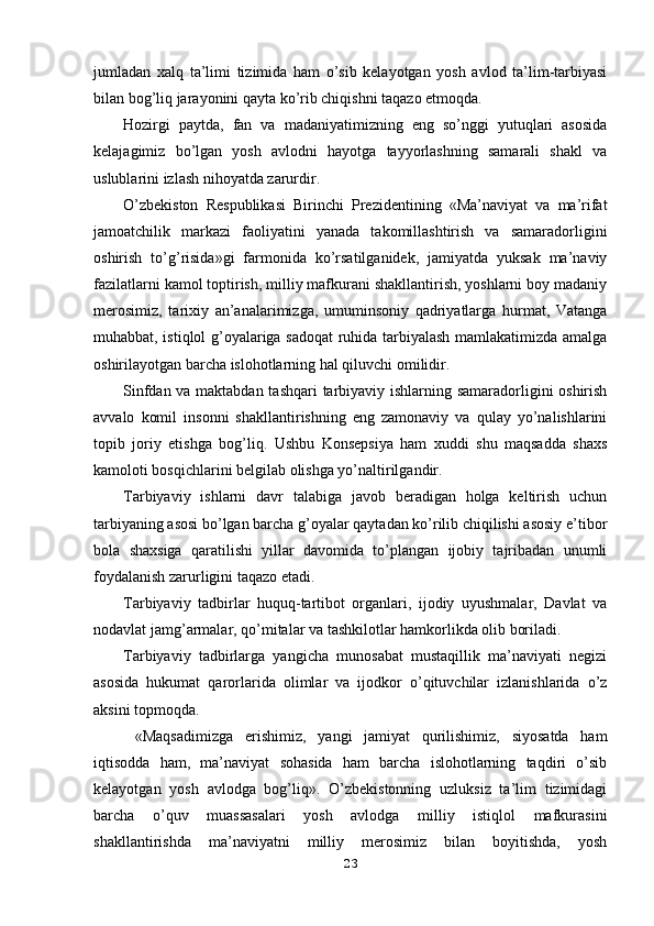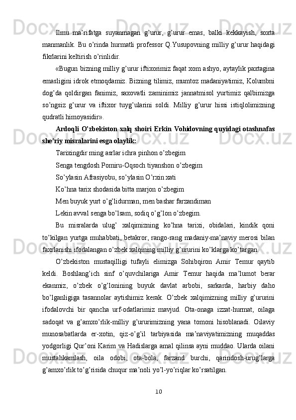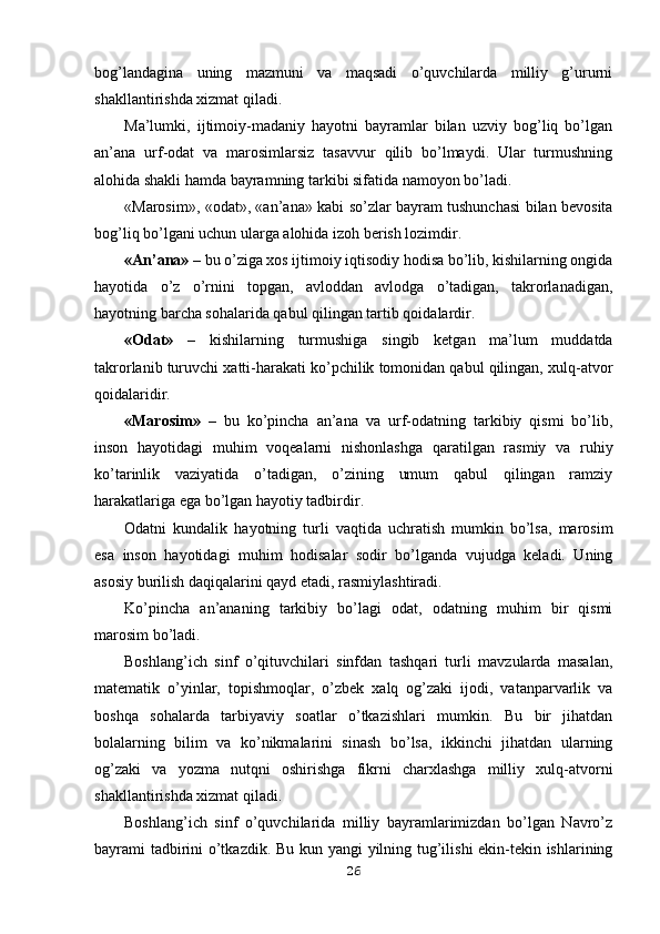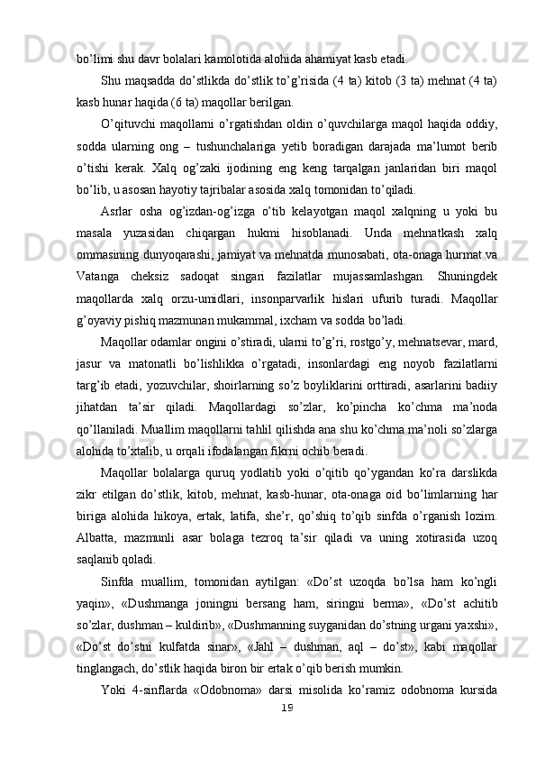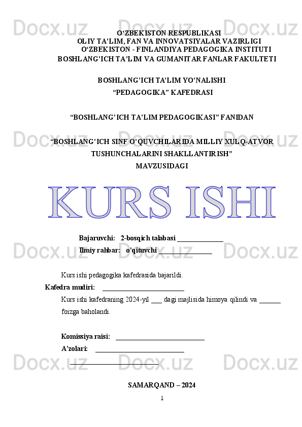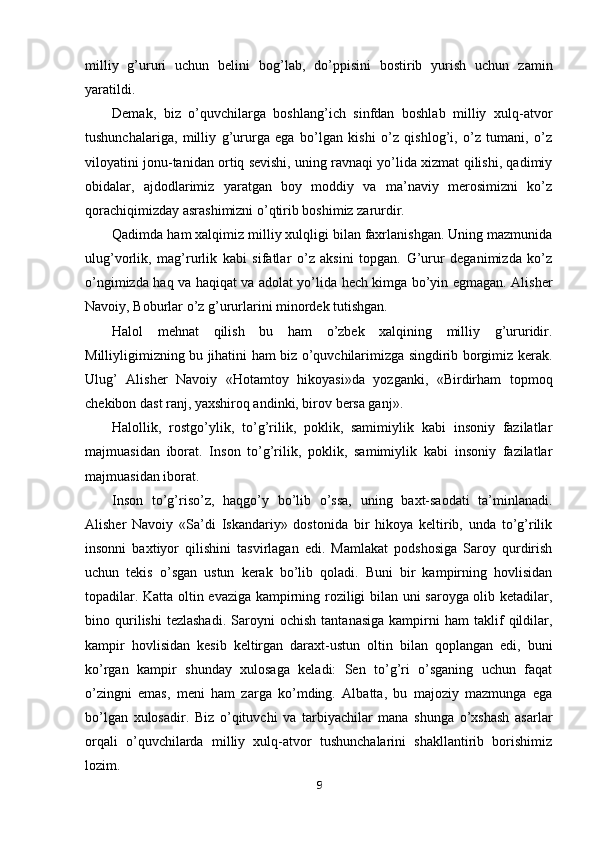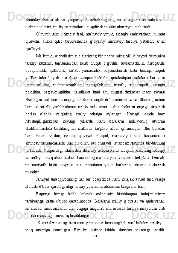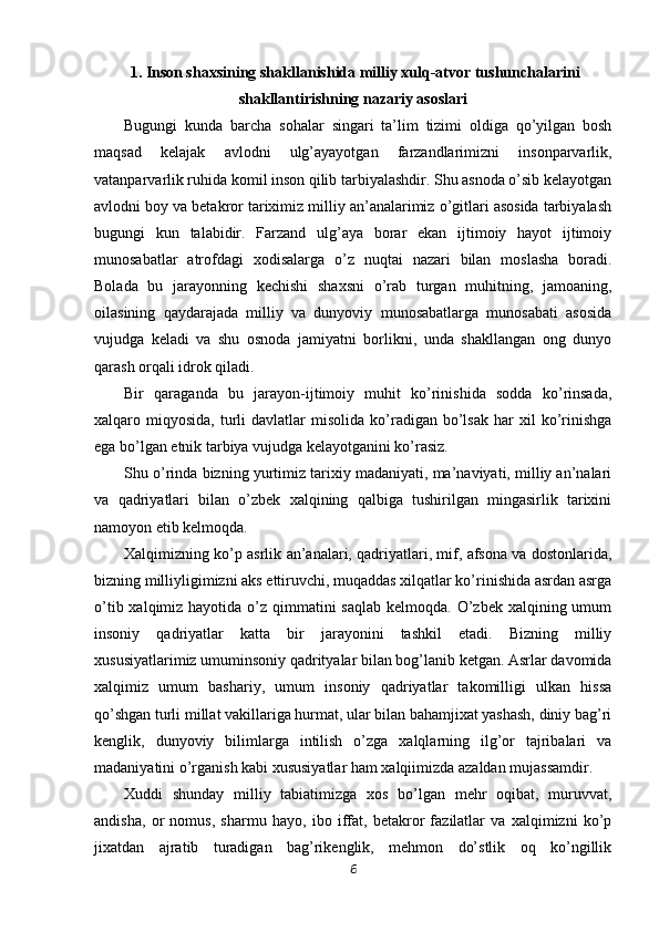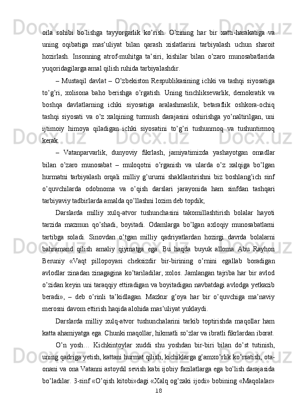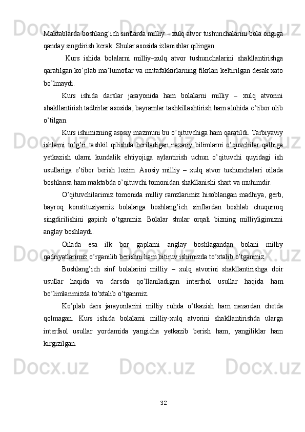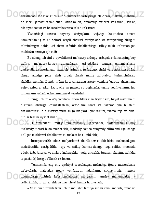 Boshlang’ich sinf o’quvchilarida milliy xulq-atvor tushunchalarini shakllantirish