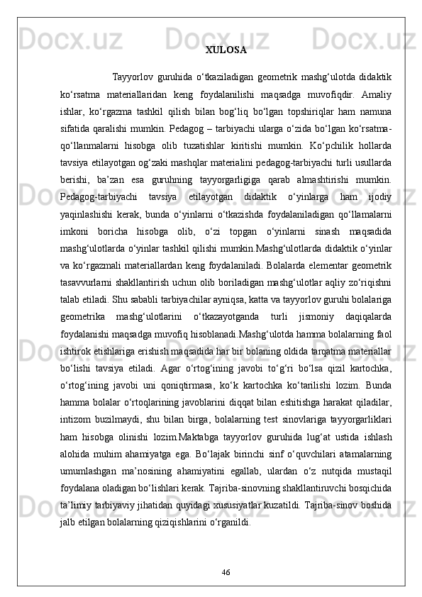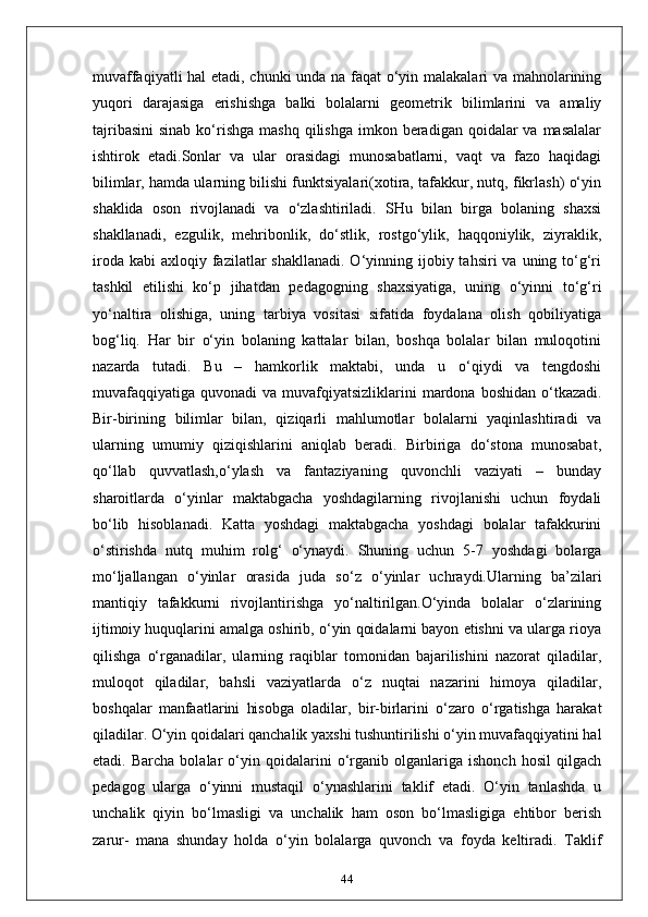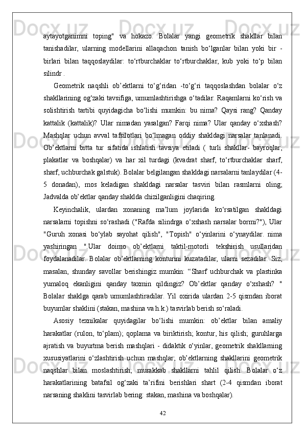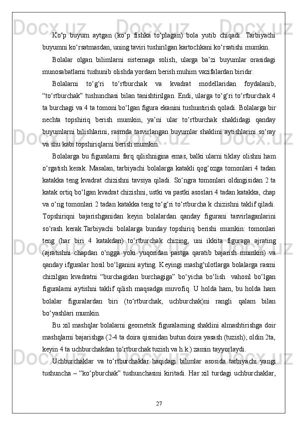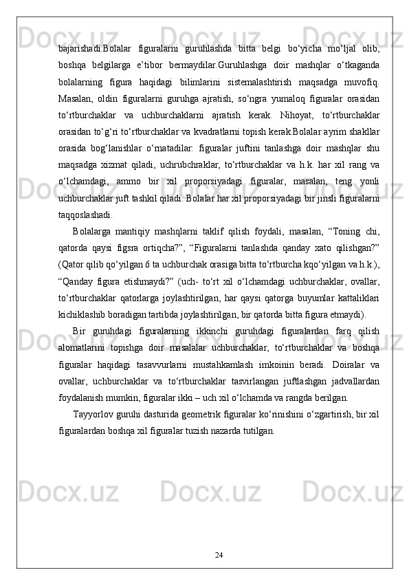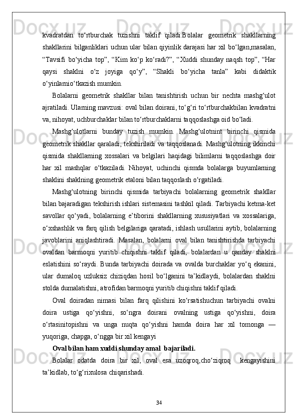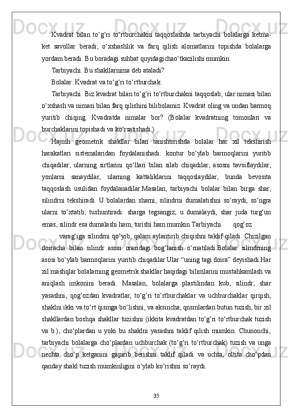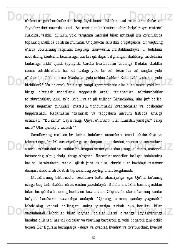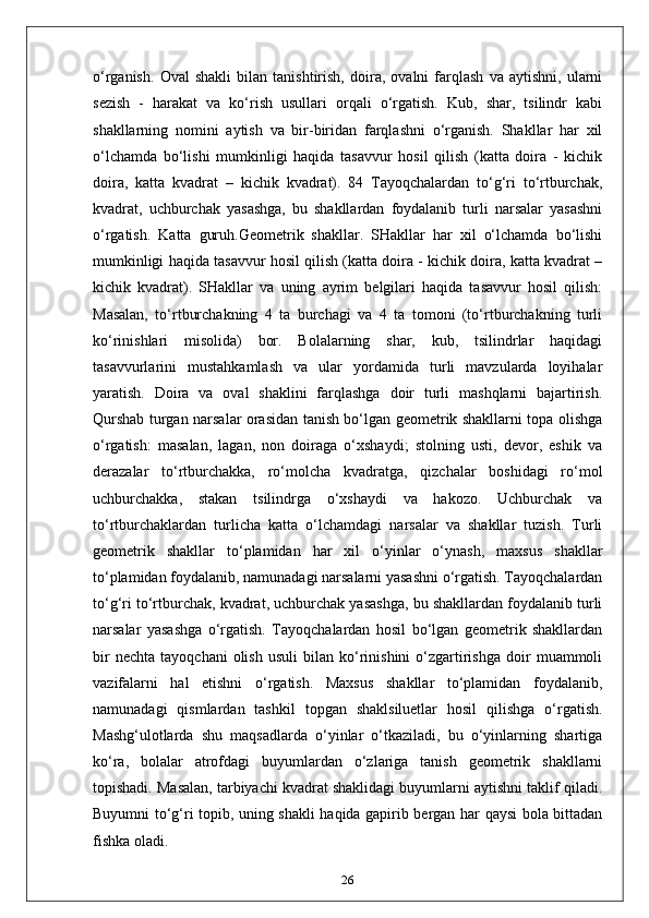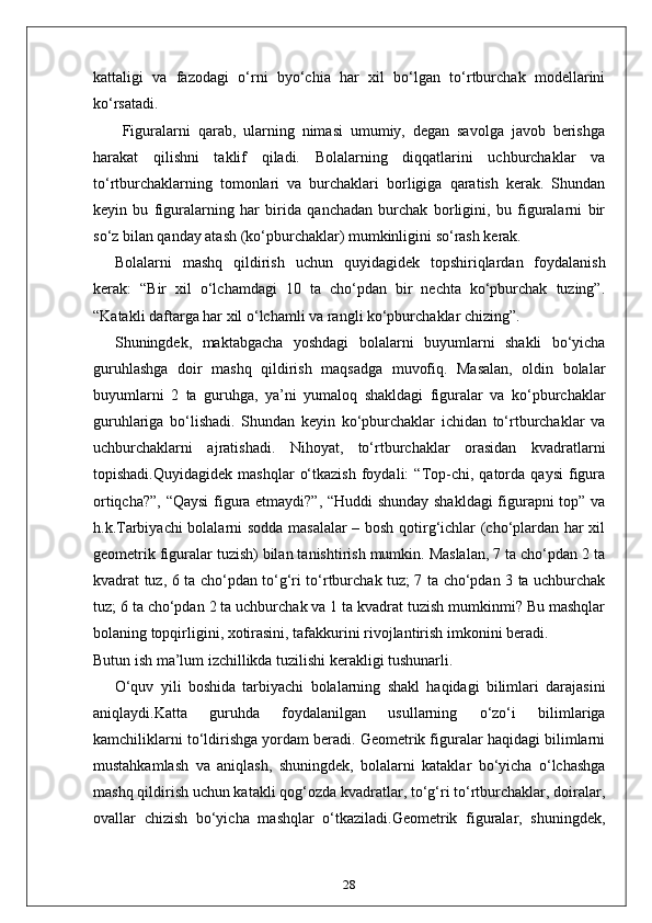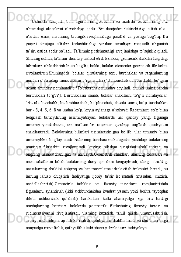 Boshlang’ich sinf o’quvchilariga geometrik figuralarni o’rgatish metodikasi