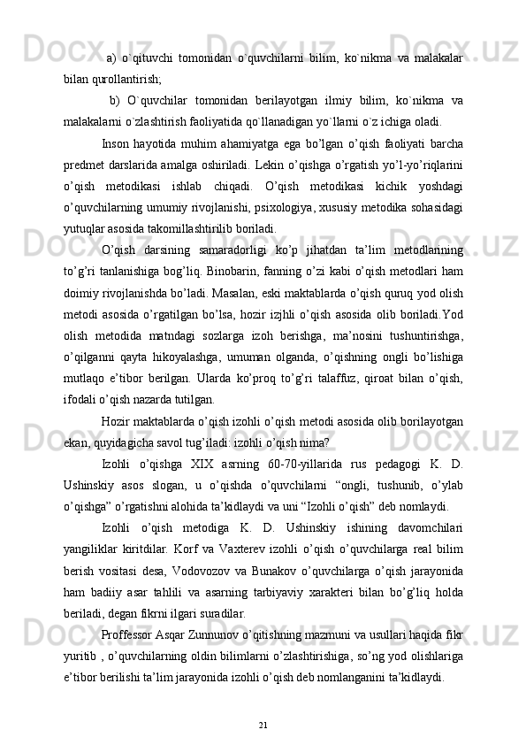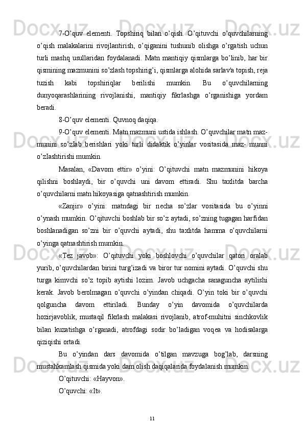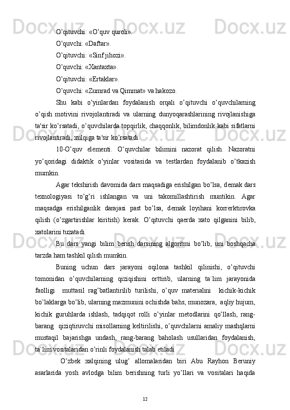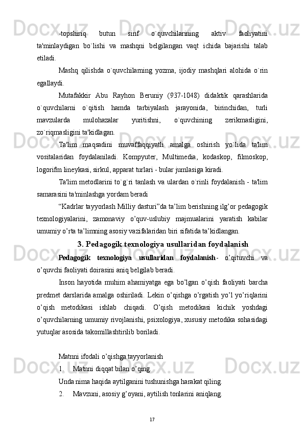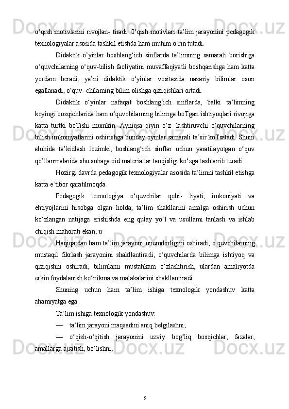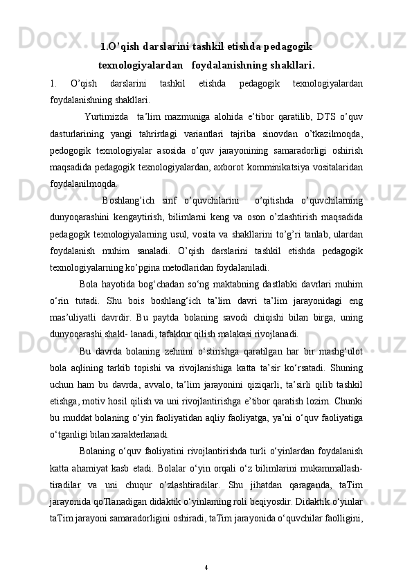 Boshlang'ich sinf o'quvchilarini o'qitishda pedagogik texnologiyalardan foydalanish