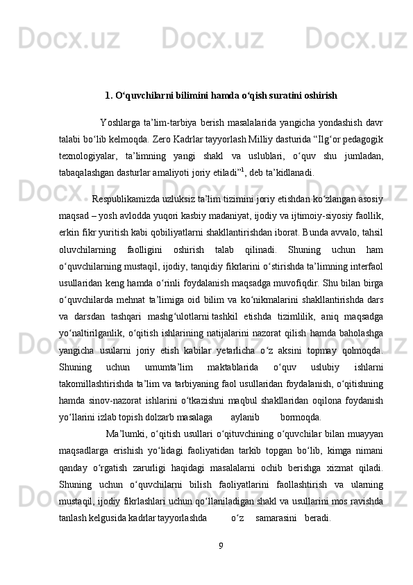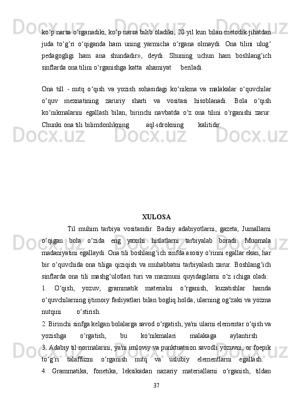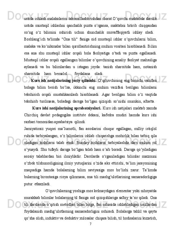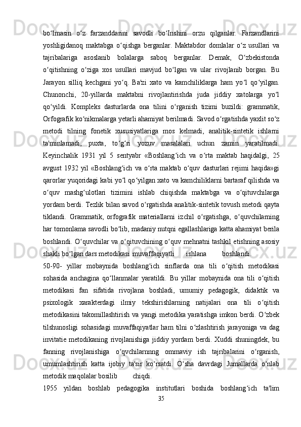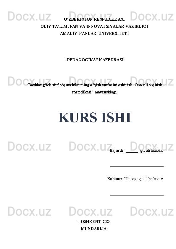 Boshlangʻich sinf oʻquvchilarining oʻqish sur’atini oshirish. Ona tili oʻqitish metodikasi
