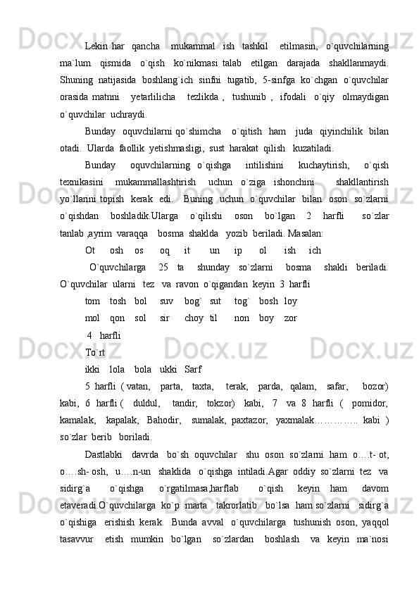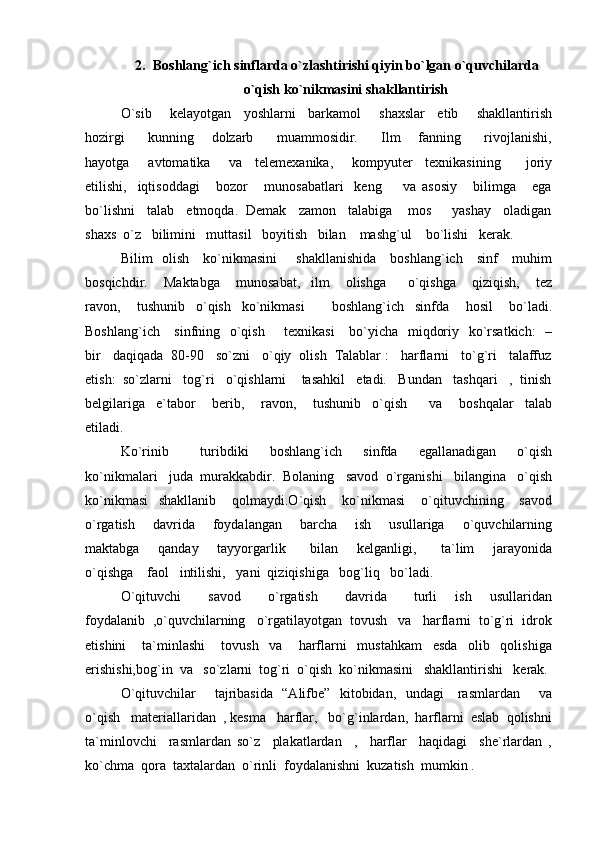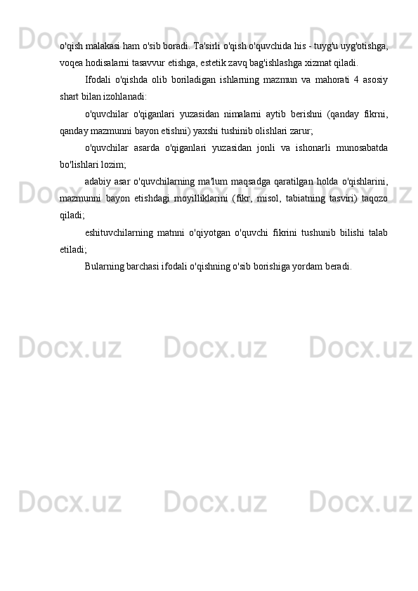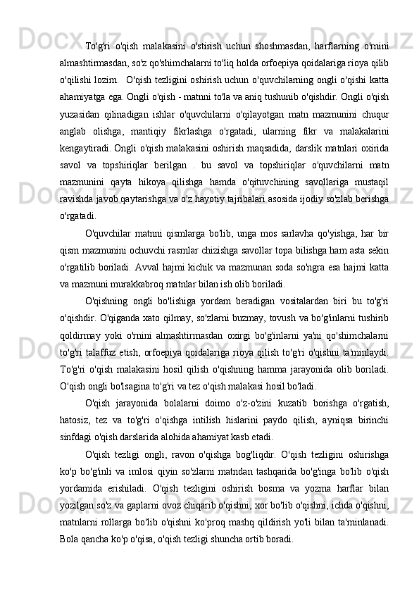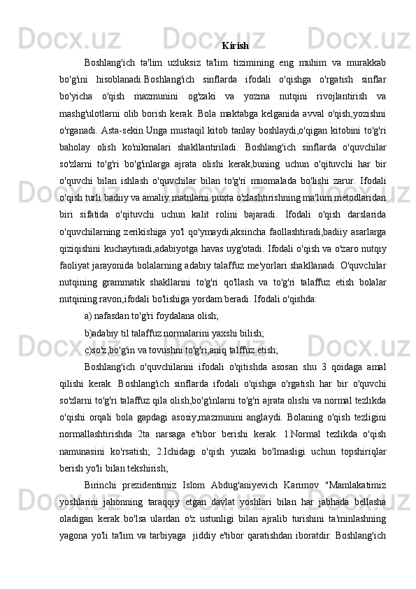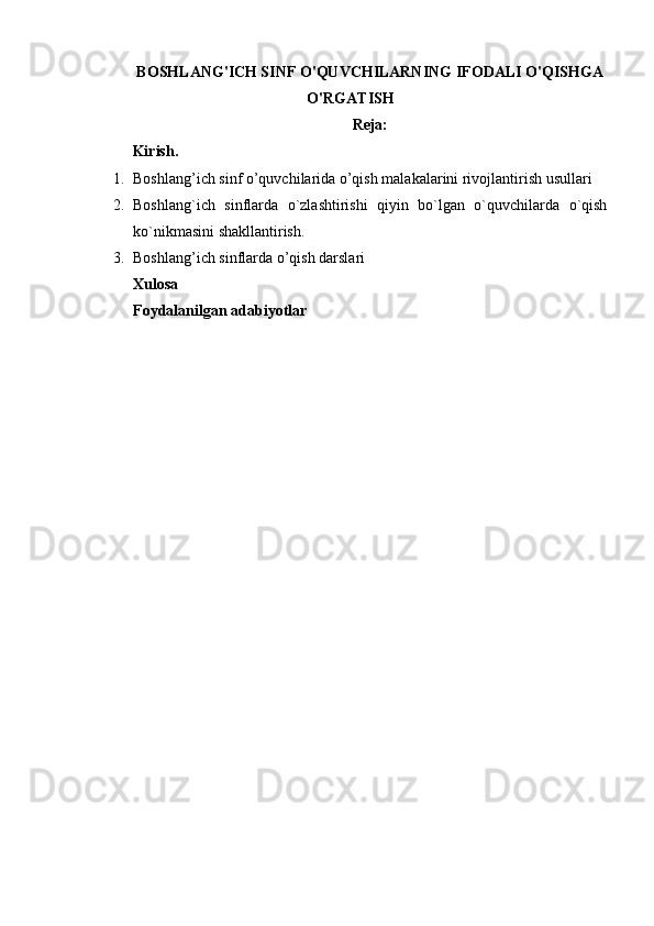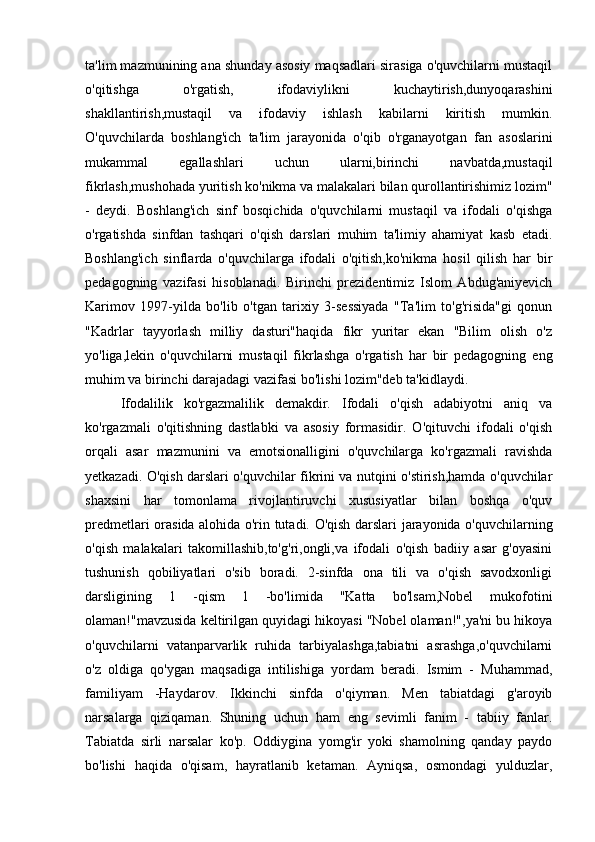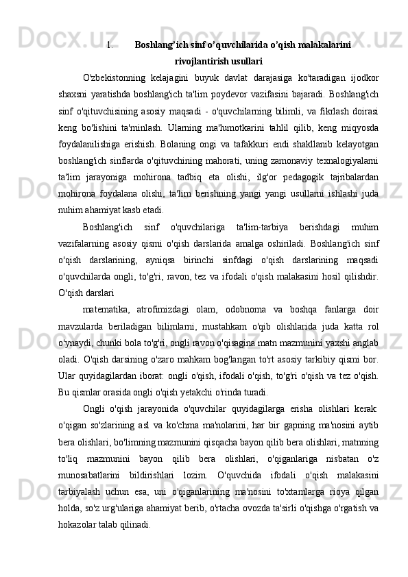 BOSHLANG'ICH SINF O'QUVCHILARNING IFODALI O'QISHGA O'RGATISH