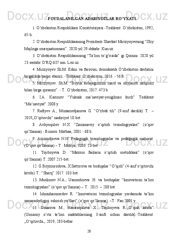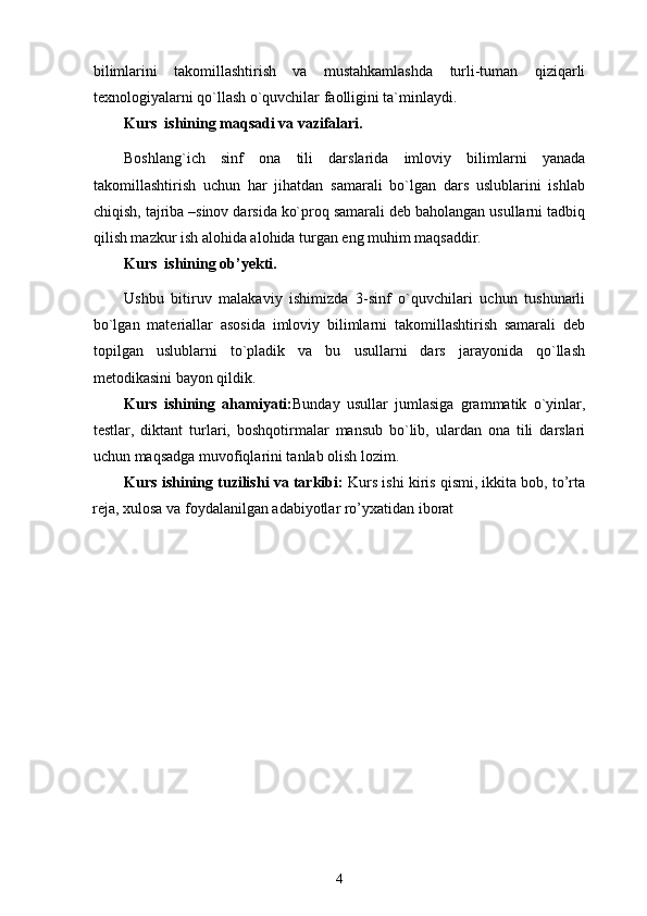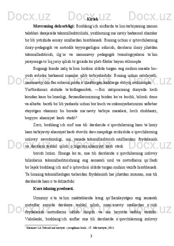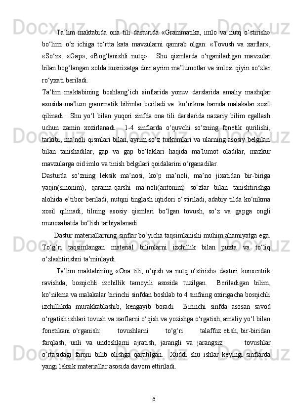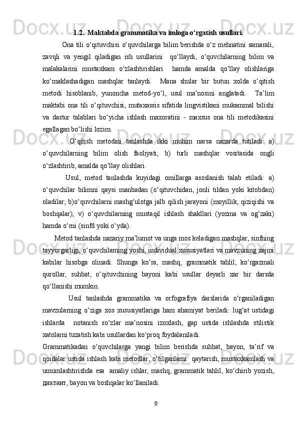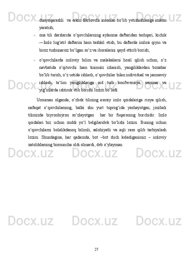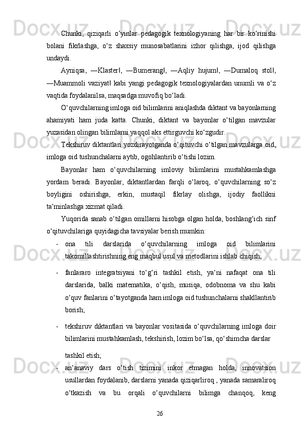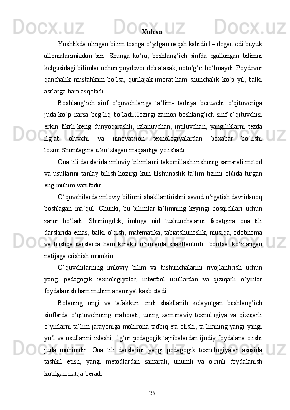 Boshlang’ich sinf ona tili va o’qish savodxonligi darslarida imlo qoidalarini o’rgatish metodikasi.