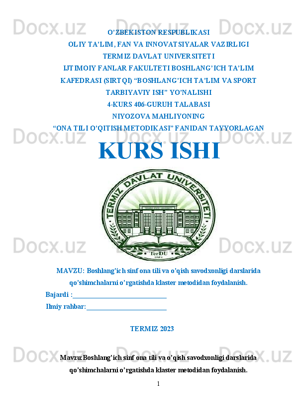 Boshlang’ich sinf ona tili va o’qish savodxonligi darslarida qo’shimchalarni o’rgatishda klaster metodidan foydalanish.